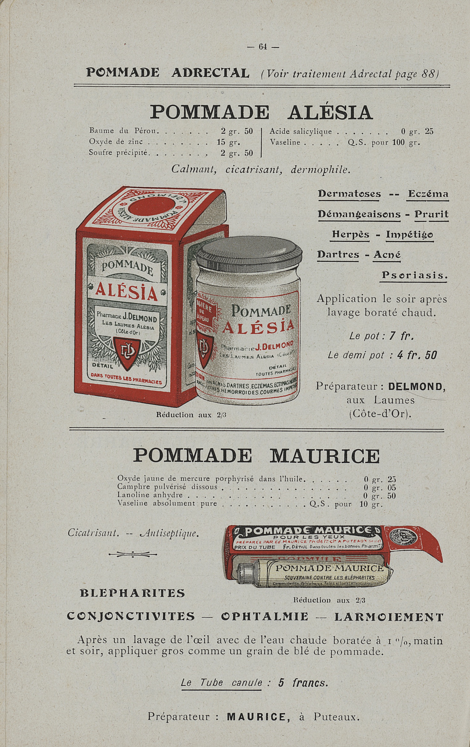 Pommade Alésia / Pommade Maurice - Mémento des socialités et produits conditionnés de la "Cooper"