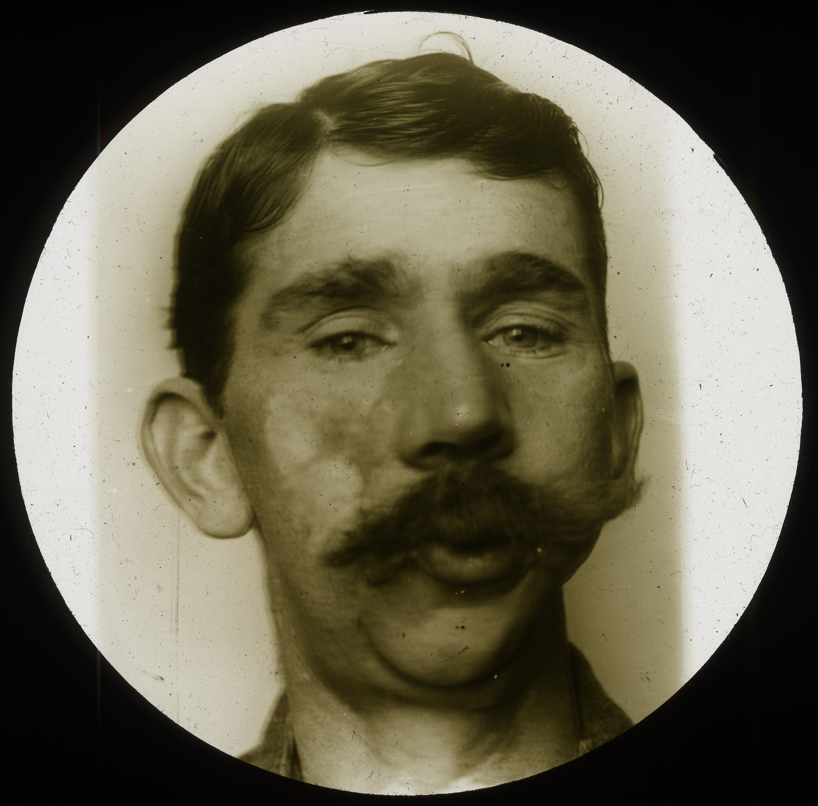 [Plaque photographique de projection. Portrait de face postopératoire.]