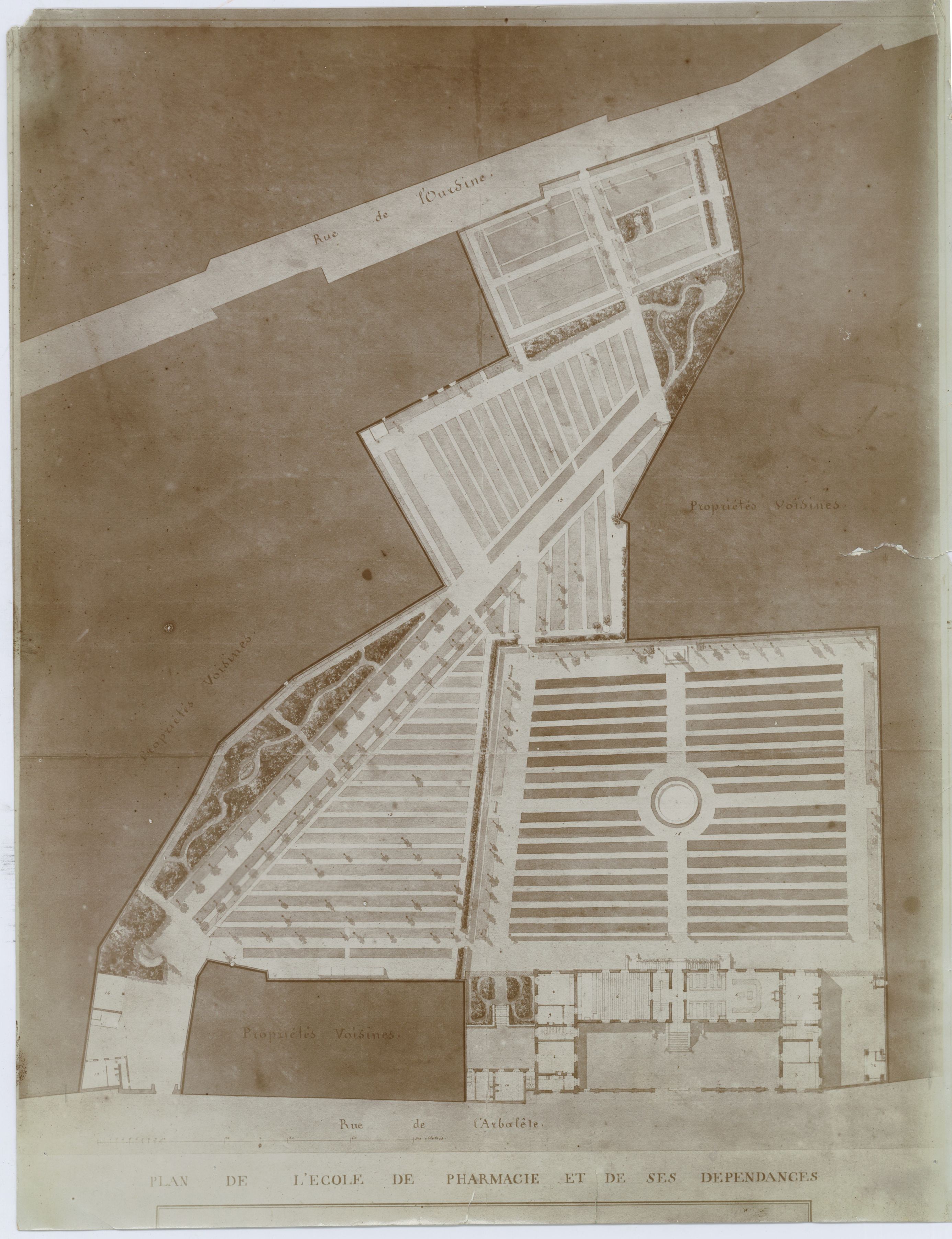 Ecole supérieure de pharmacie de Paris. Plan de l'ancienne Ecole de pharmacie et de ses dépendances, rue de l'Arbalète en 1839. [Faculté de pharmacie de Paris]