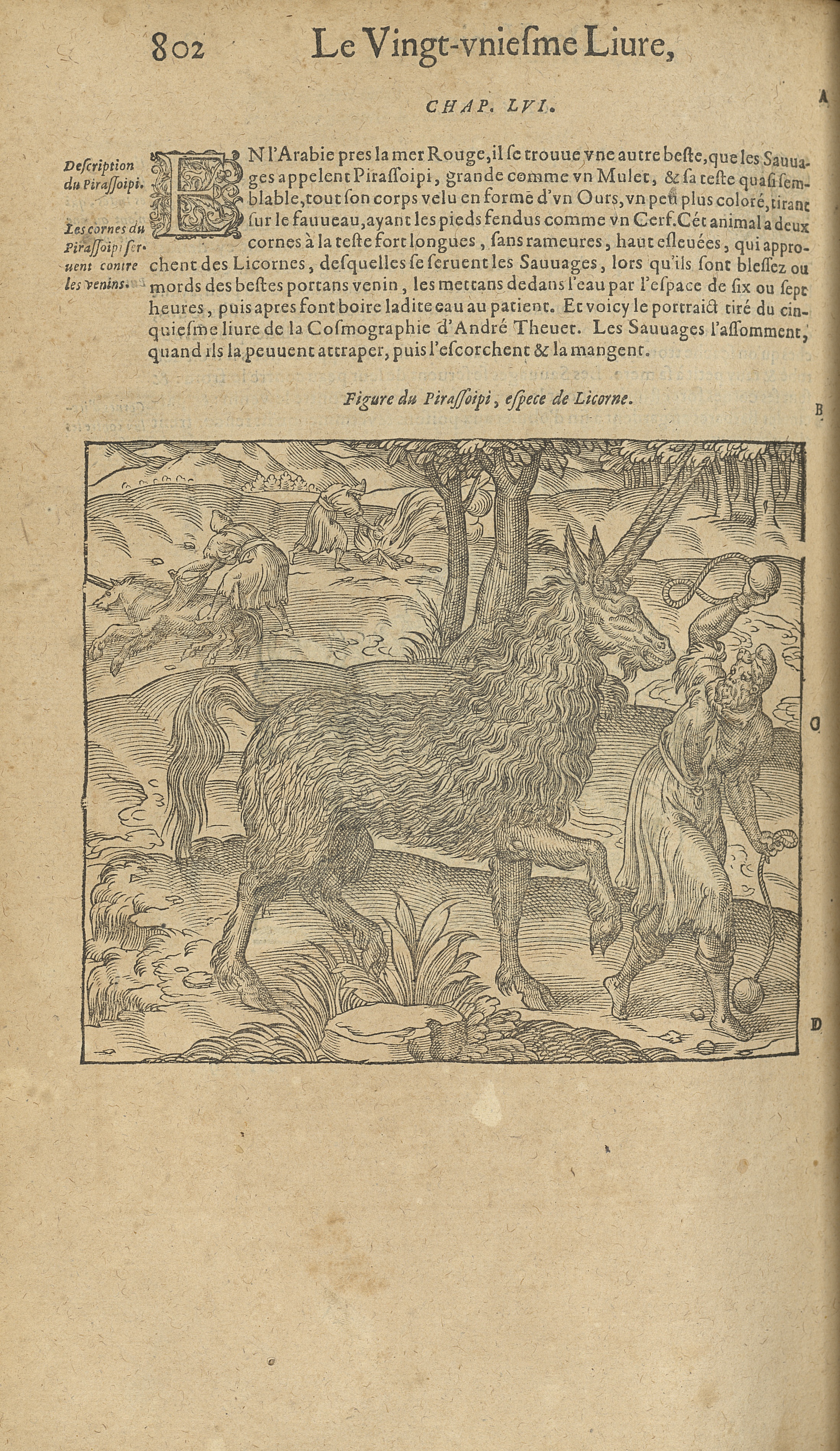 Figure du pirassoipi, espece de licorne - Les Oeuvres d'Ambroise Paré,...divisees en trente livres. Avec les figures & pourtraicts, tant de l'Anatomie, que des instruments de chirurgie, & de plusieurs monstres...en cette huictiesme Edition