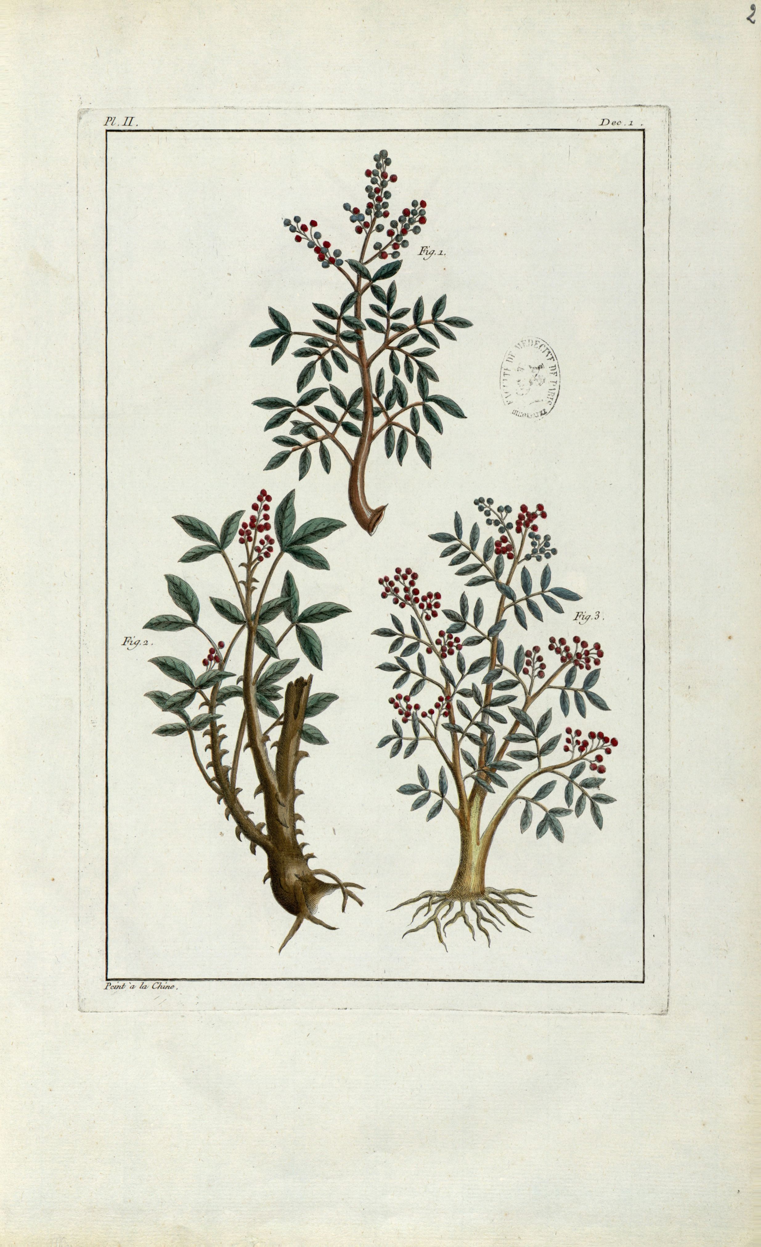 Planche II - Herbier ou collection des plantes médicinales de la Chine d'après un manuscrit peint et unique qui se trouve dans la Bibliothèque de l'Empereur de la Chine