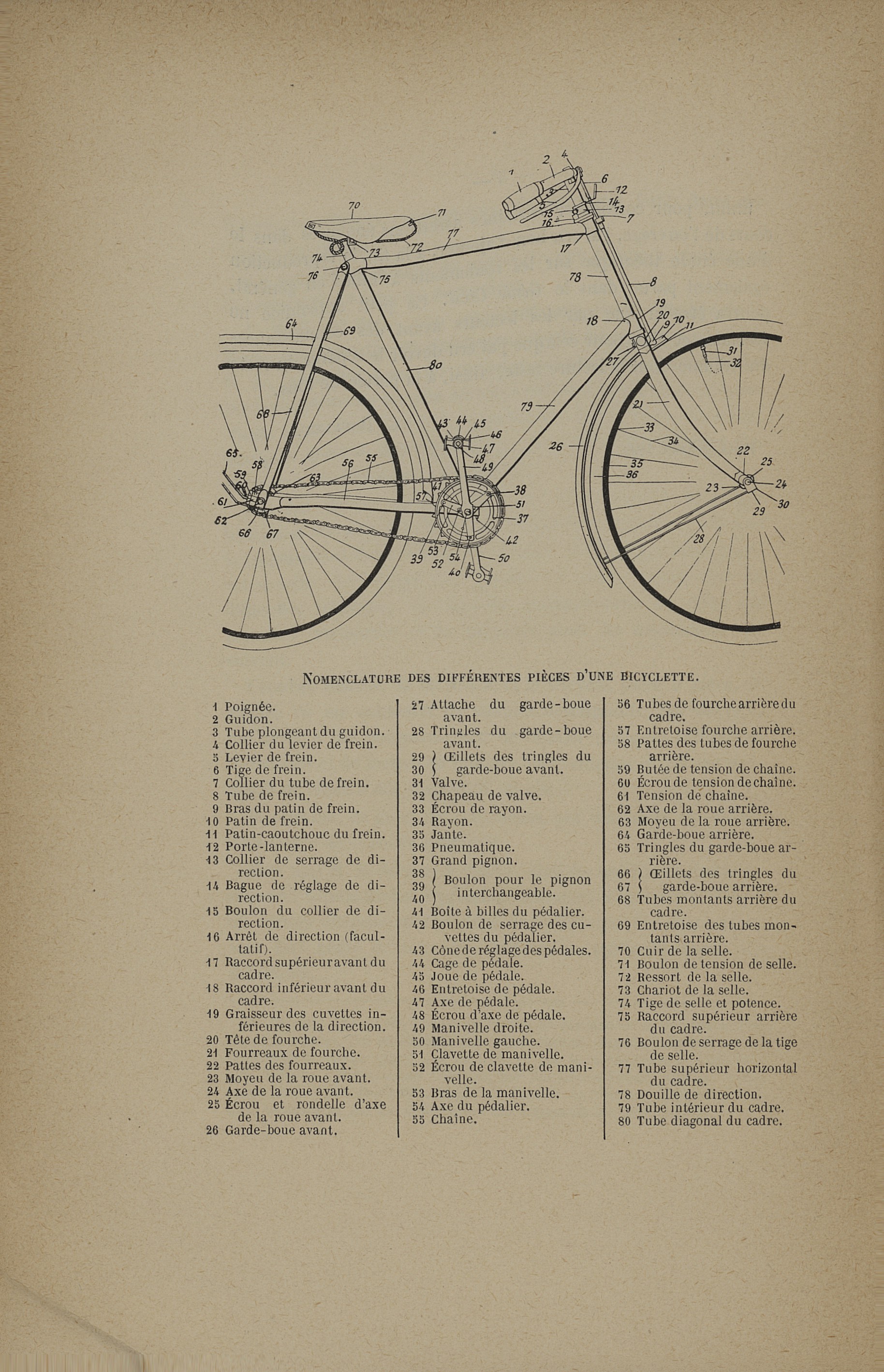 Nomenclature des différentes pièces d'une bicyclette - La bicyclette. Sa construction et sa forme