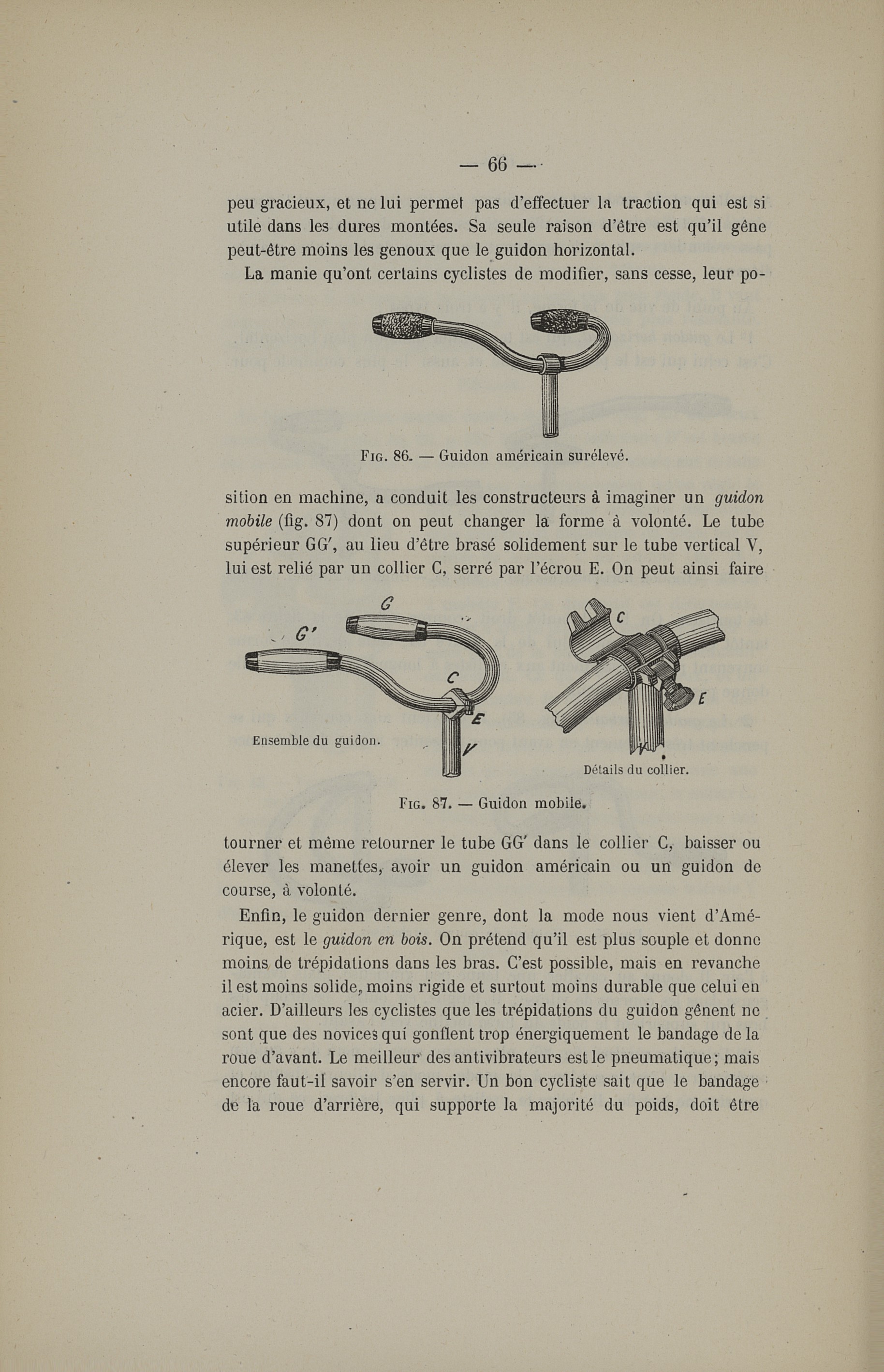 Fig. 86. Guidon américain surélevé / Fig. 87. Guidon mobile - La bicyclette. Sa construction et sa forme