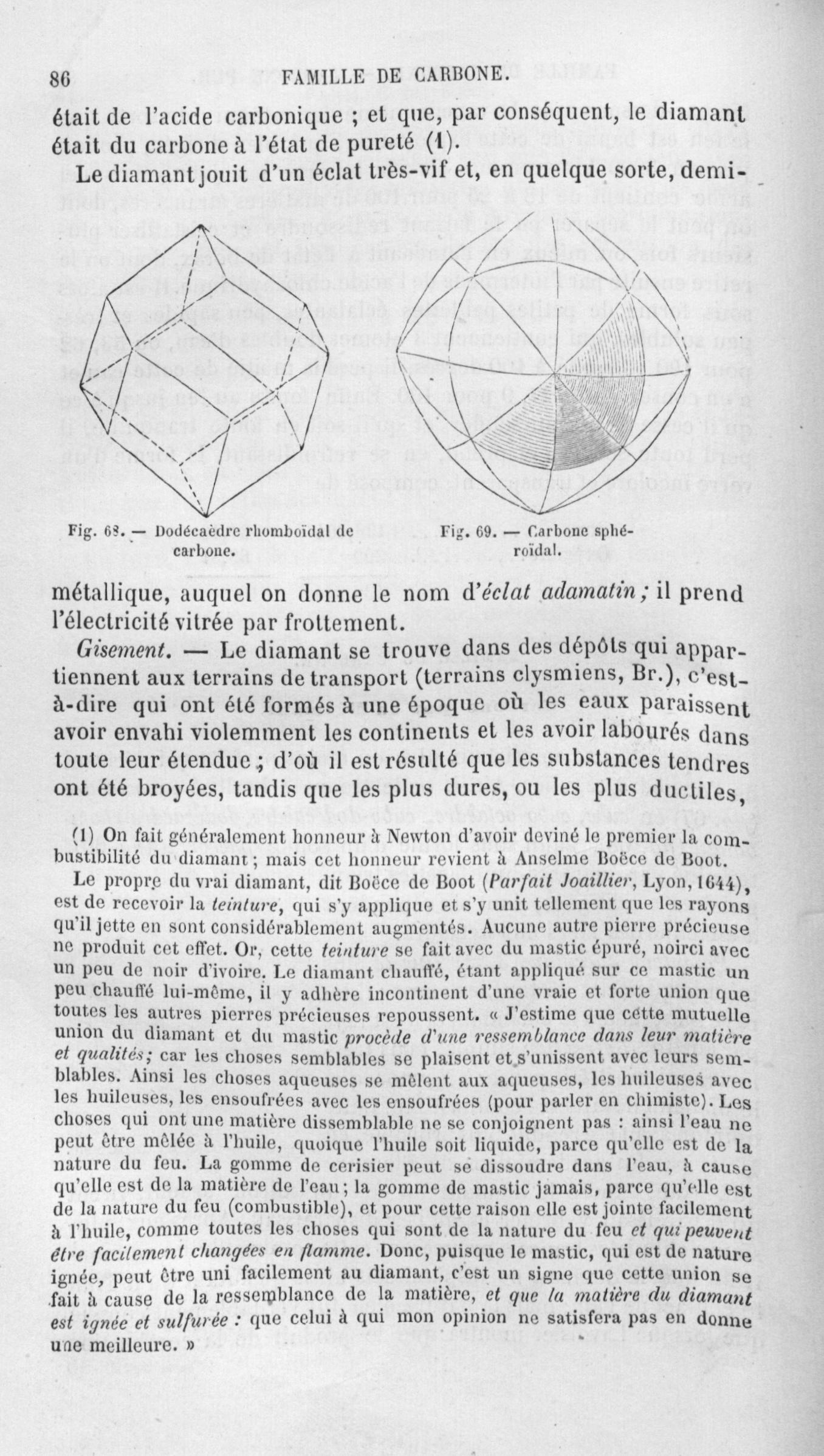 Dodécaèdre rhomboïdal de carbone / Carbone sphéroïdal - Histoire naturelle des drogues simples, ou Cours d'histoire naturelle professé à l'École supérieure de pharmacie de Paris. Tome premier