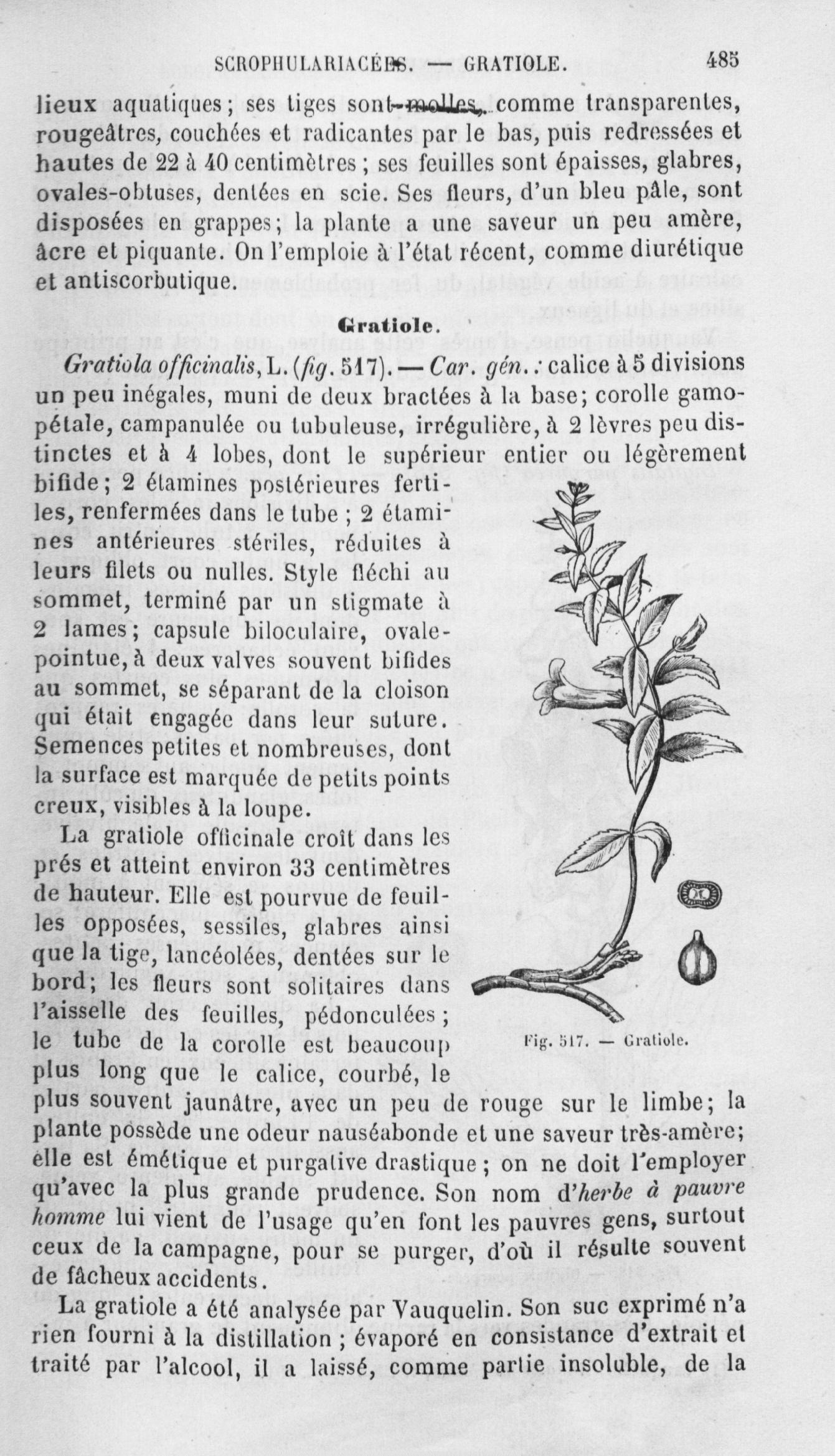 Gratiole - Histoire naturelle des drogues simples, ou Cours d'histoire naturelle professé à l'École supérieure de pharmacie de Paris. Tome deuxième