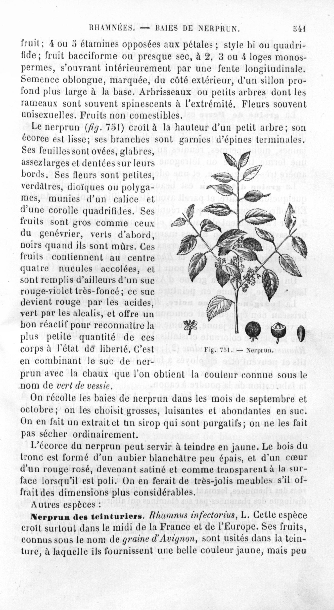 Nerprun - Histoire naturelle des drogues simples, ou Cours d'histoire naturelle professé à l'École supérieure de pharmacie de Paris. Tome troisième
