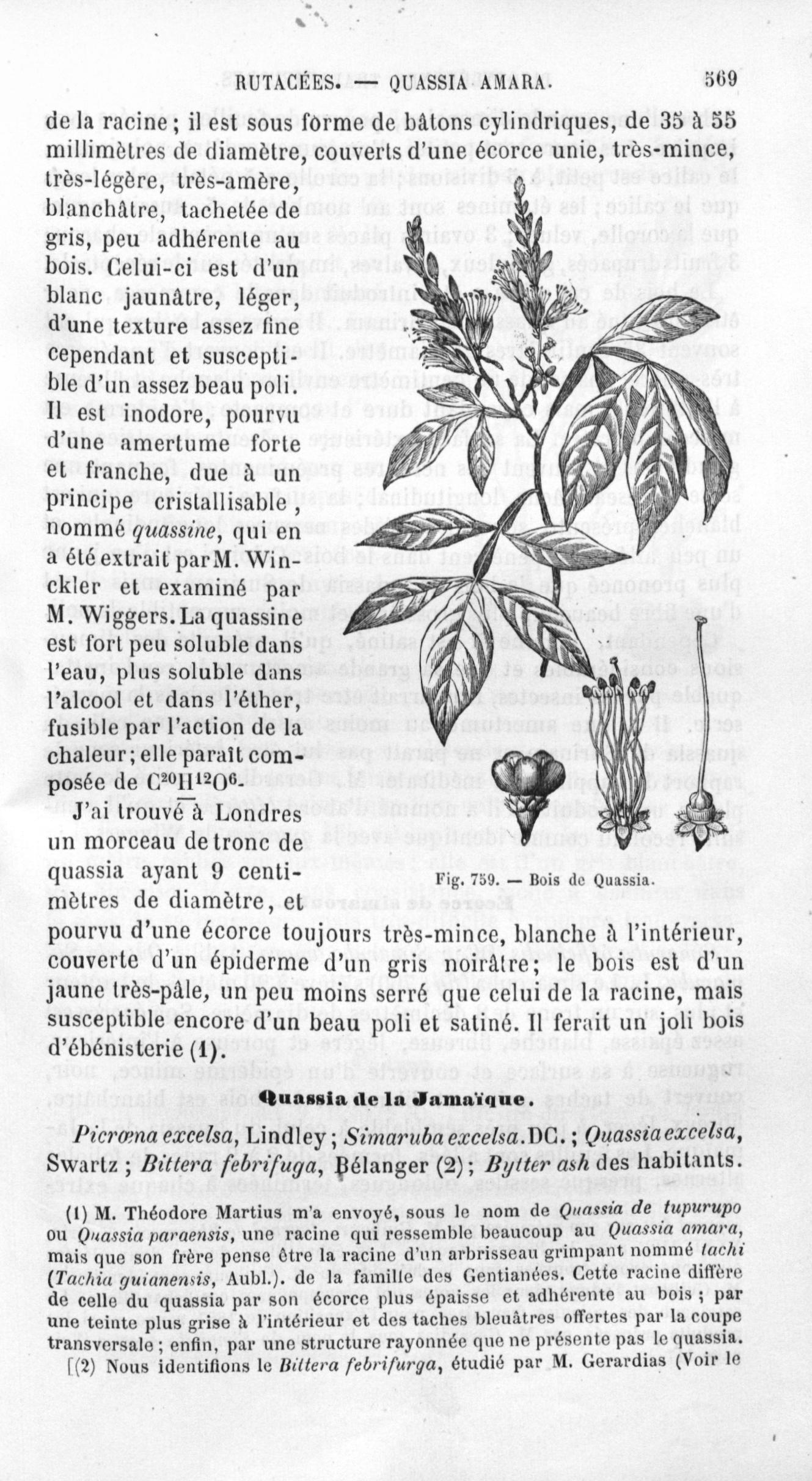 Bois de Quassia - Histoire naturelle des drogues simples, ou Cours d'histoire naturelle professé à l'École supérieure de pharmacie de Paris. Tome troisième