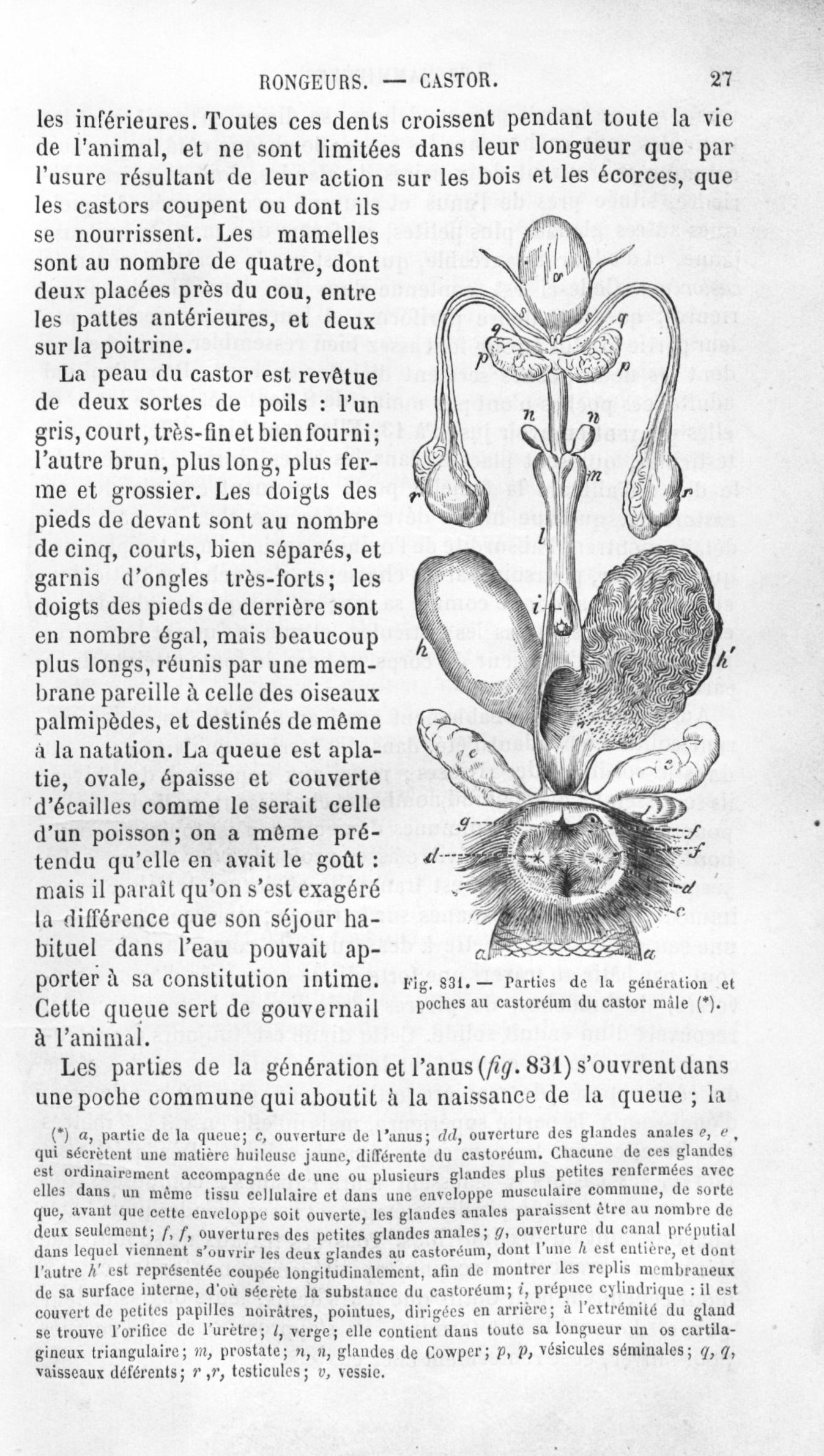 Parties de la génération et poches au castoréum du castor mâle - Histoire naturelle des drogues simples, ou Cours d'histoire naturelle professé à l'École supérieure de pharmacie de Paris. Tome quatrième