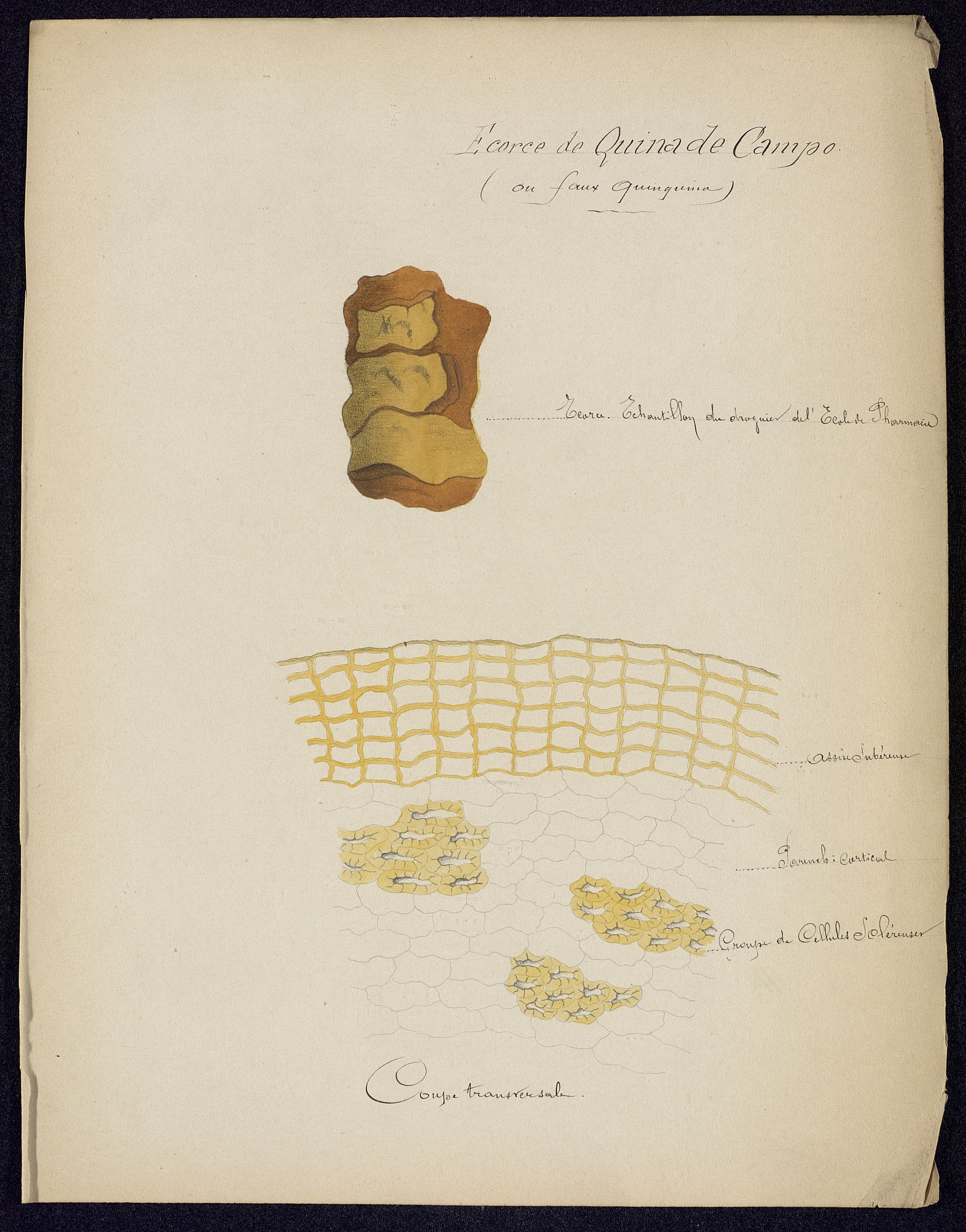 [Dessin :] Ecorce de Quina de Campo (ou faux quinquina) - Les produits donnés à la matière médicale par les apocynées