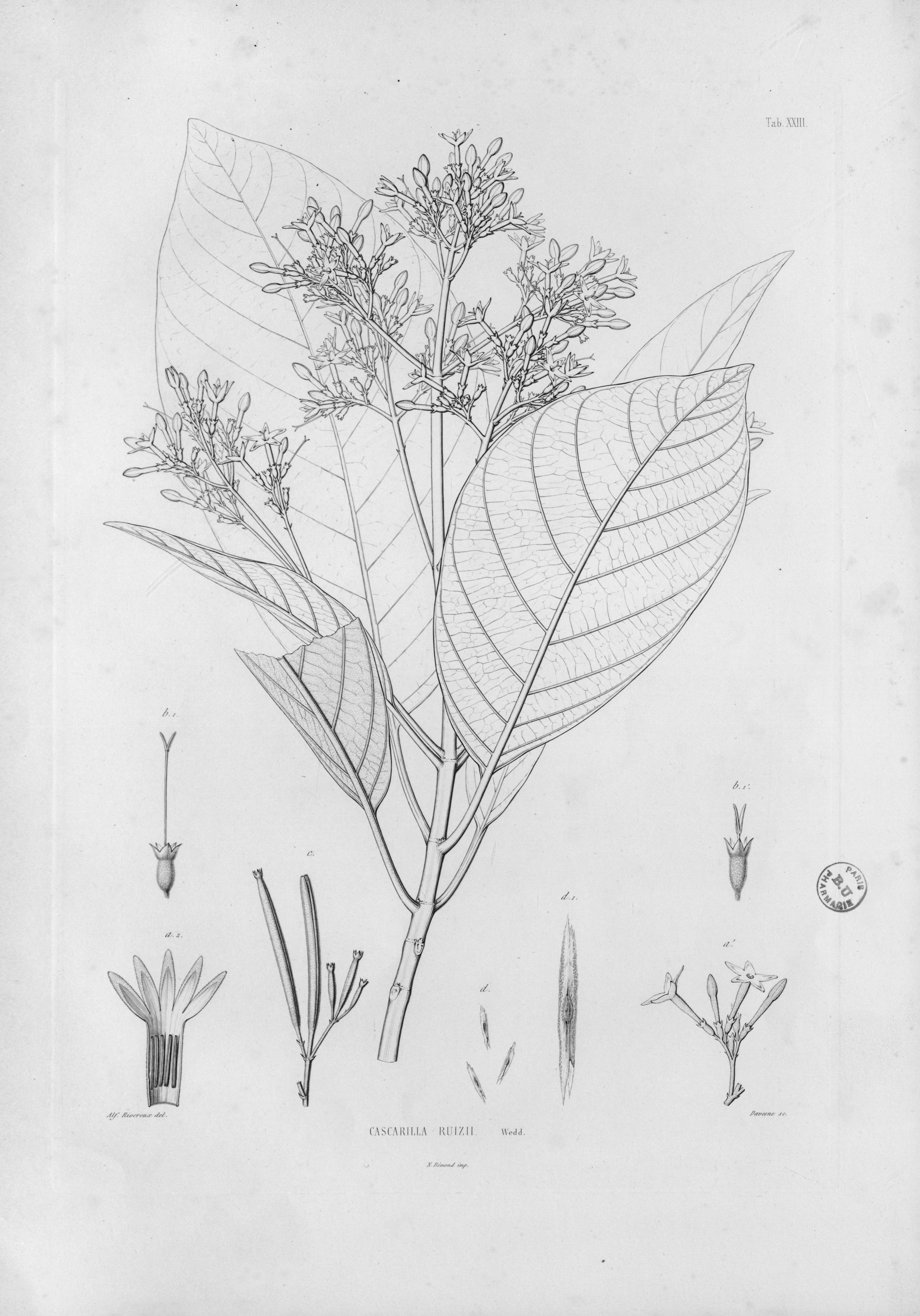 Cascarilla Ruizoo. Wedd - Histoire naturelle des quinquinas ou Monographie du genre Cinchona, suivie d'une description du genre Cascarilla et de quelques autres plantes de la même tribu