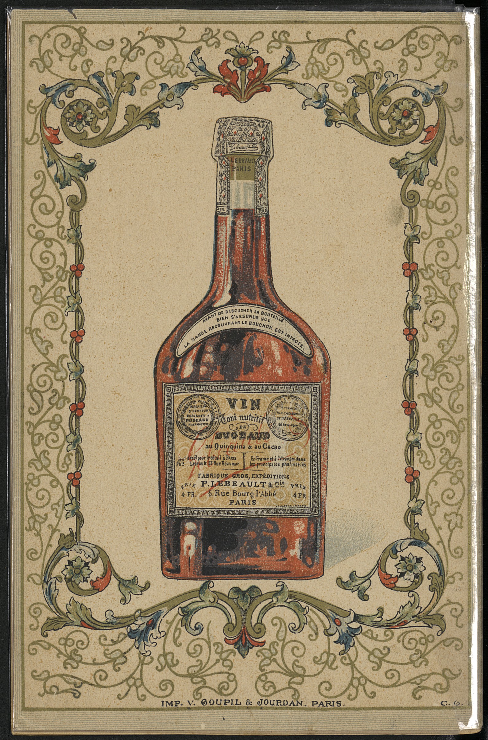 Vin de Bugeaud - Notice sur le vin de Bugeaud toni-nutritif au quinquina et au cacao