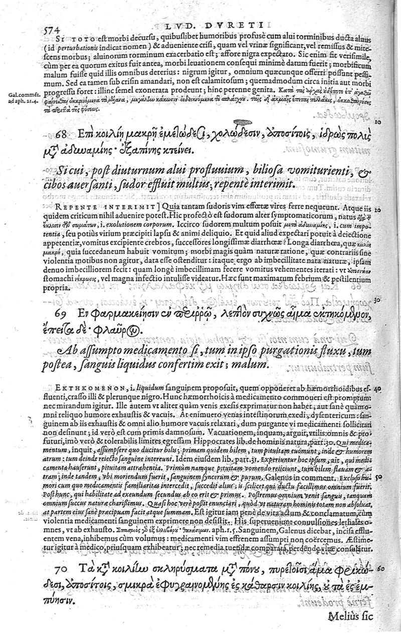 Hippocratis magni coacae praenotiones... interprete & enarratore Ludovico Dureto,...