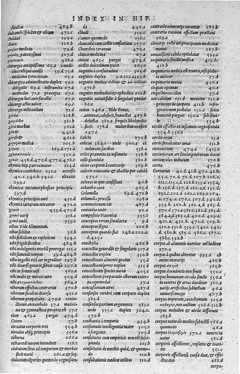 Hippocratis,... Viginti duo commentarii tabulis illustrati : graecus contextus ex doctiss. VV. codicibus emendatus ; latina versio Jani Cornarii... correcta ; sententiae insignes per locos communes... digestae, Theod. Zvingeri,... studio et conatu