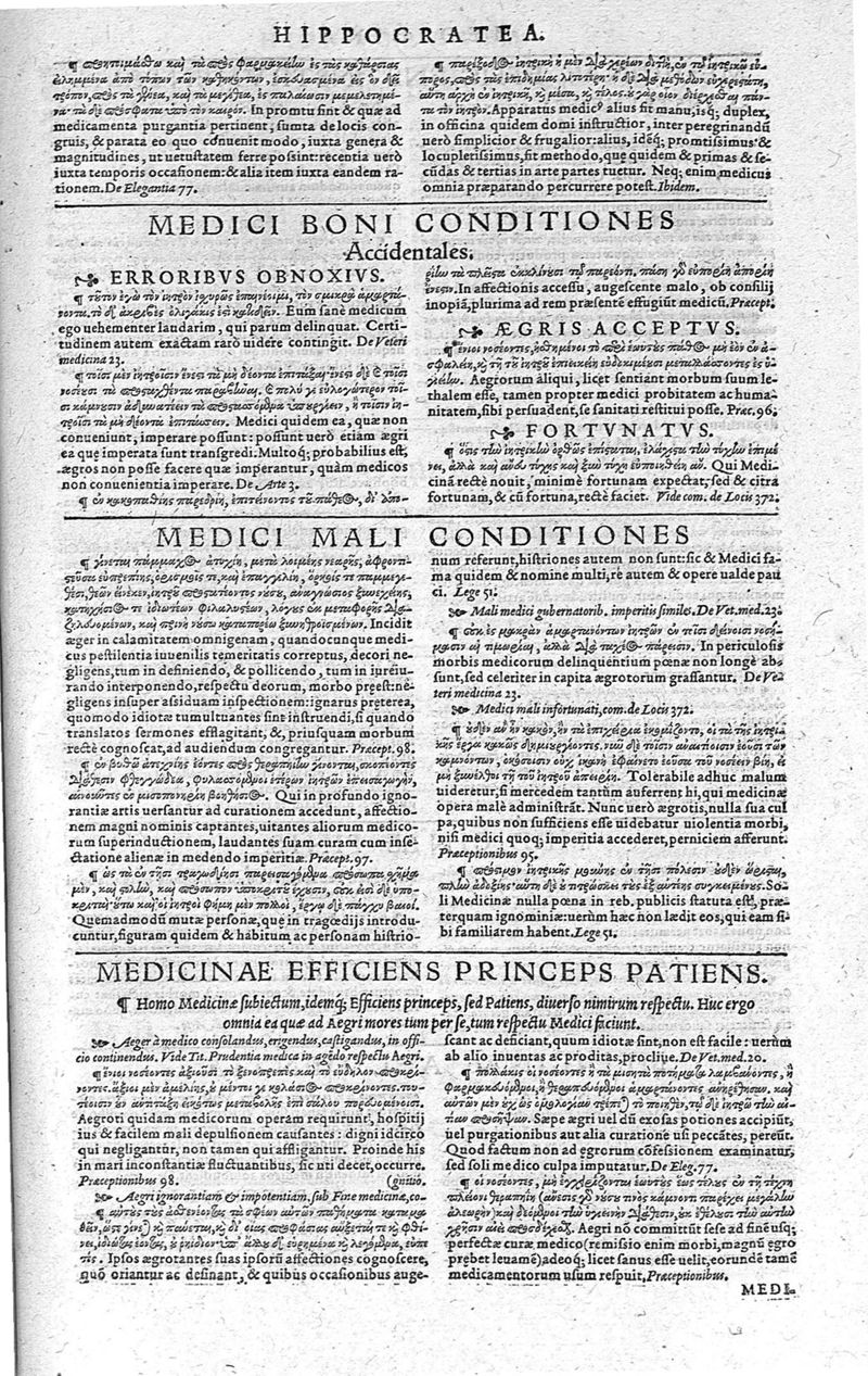 Hippocratis,... Viginti duo commentarii tabulis illustrati : graecus contextus ex doctiss. VV. codicibus emendatus ; latina versio Jani Cornarii... correcta ; sententiae insignes per locos communes... digestae, Theod. Zvingeri,... studio et conatu