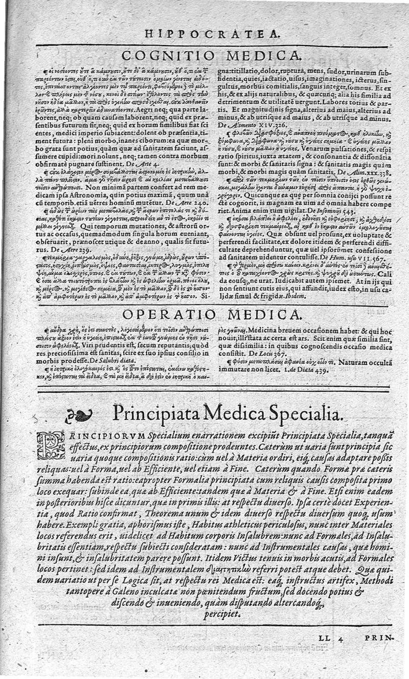 Hippocratis,... Viginti duo commentarii tabulis illustrati : graecus contextus ex doctiss. VV. codicibus emendatus ; latina versio Jani Cornarii... correcta ; sententiae insignes per locos communes... digestae, Theod. Zvingeri,... studio et conatu