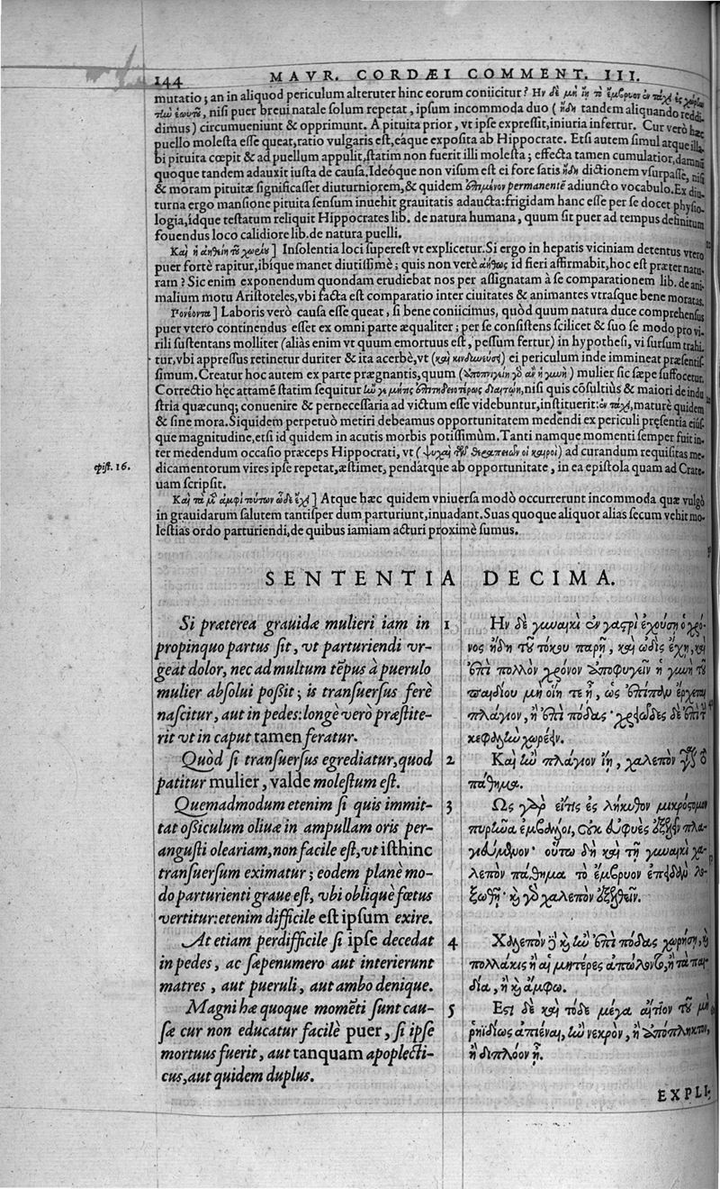 Hippocratis coi, medicorum principis Liber prior de morbis mulierum ... Mauricio Cordaeo Rhemo interprete & explicatore