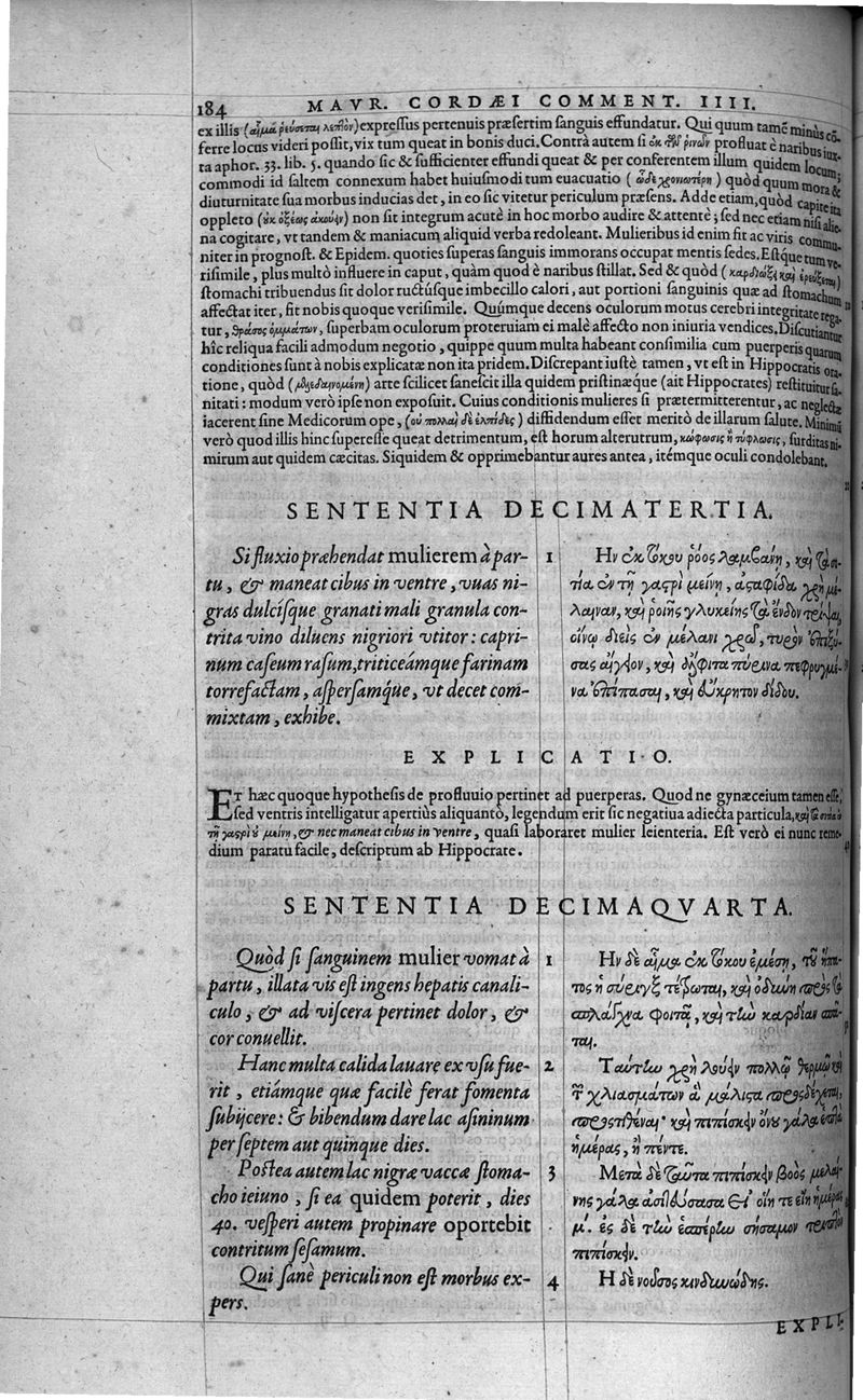 Hippocratis coi, medicorum principis Liber prior de morbis mulierum ... Mauricio Cordaeo Rhemo interprete & explicatore