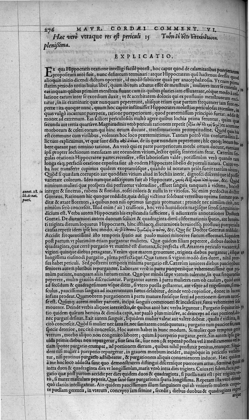 Hippocratis coi, medicorum principis Liber prior de morbis mulierum ... Mauricio Cordaeo Rhemo interprete & explicatore
