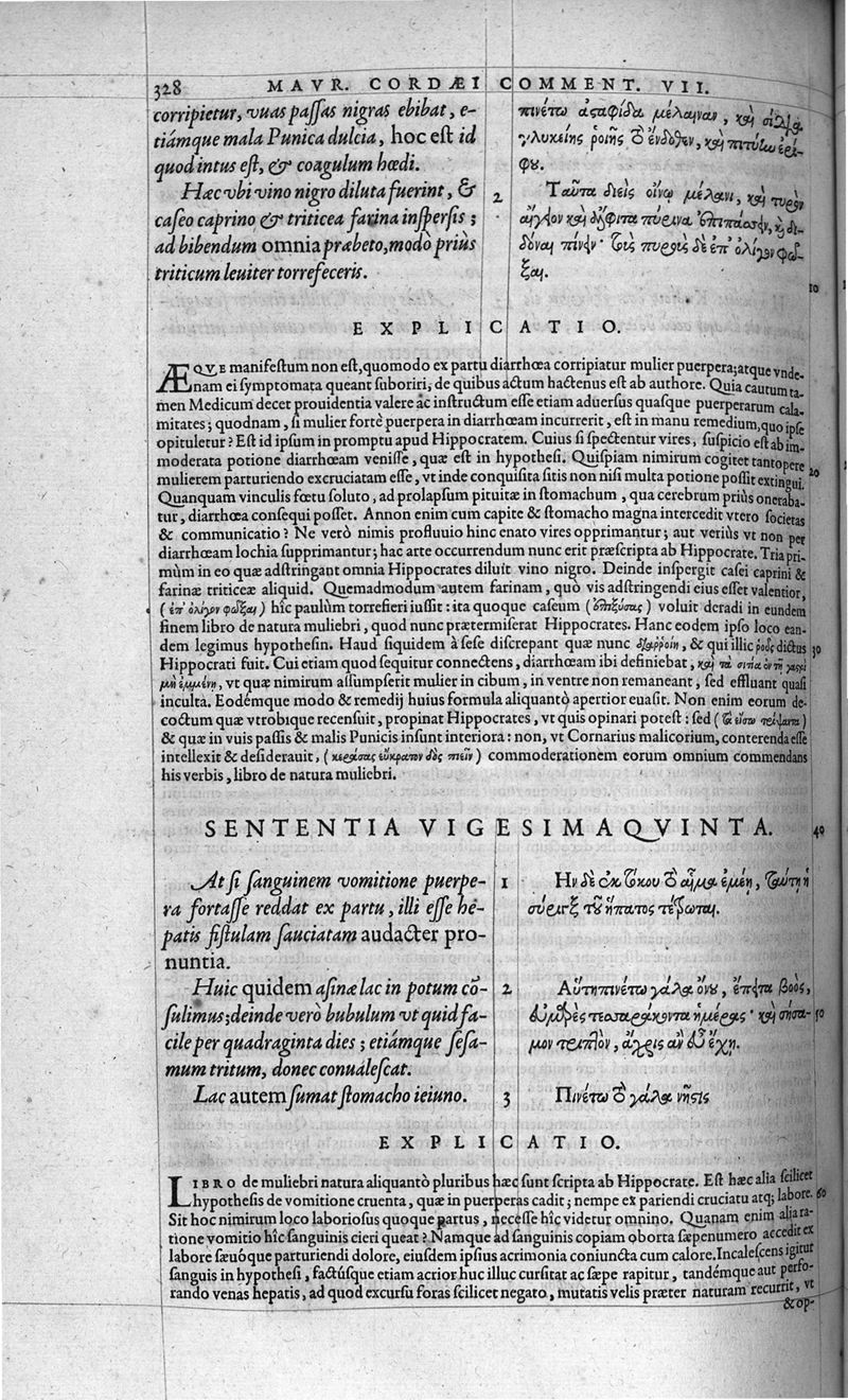 Hippocratis coi, medicorum principis Liber prior de morbis mulierum ... Mauricio Cordaeo Rhemo interprete & explicatore