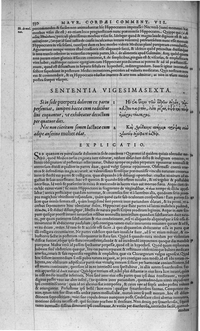 Hippocratis coi, medicorum principis Liber prior de morbis mulierum ... Mauricio Cordaeo Rhemo interprete & explicatore