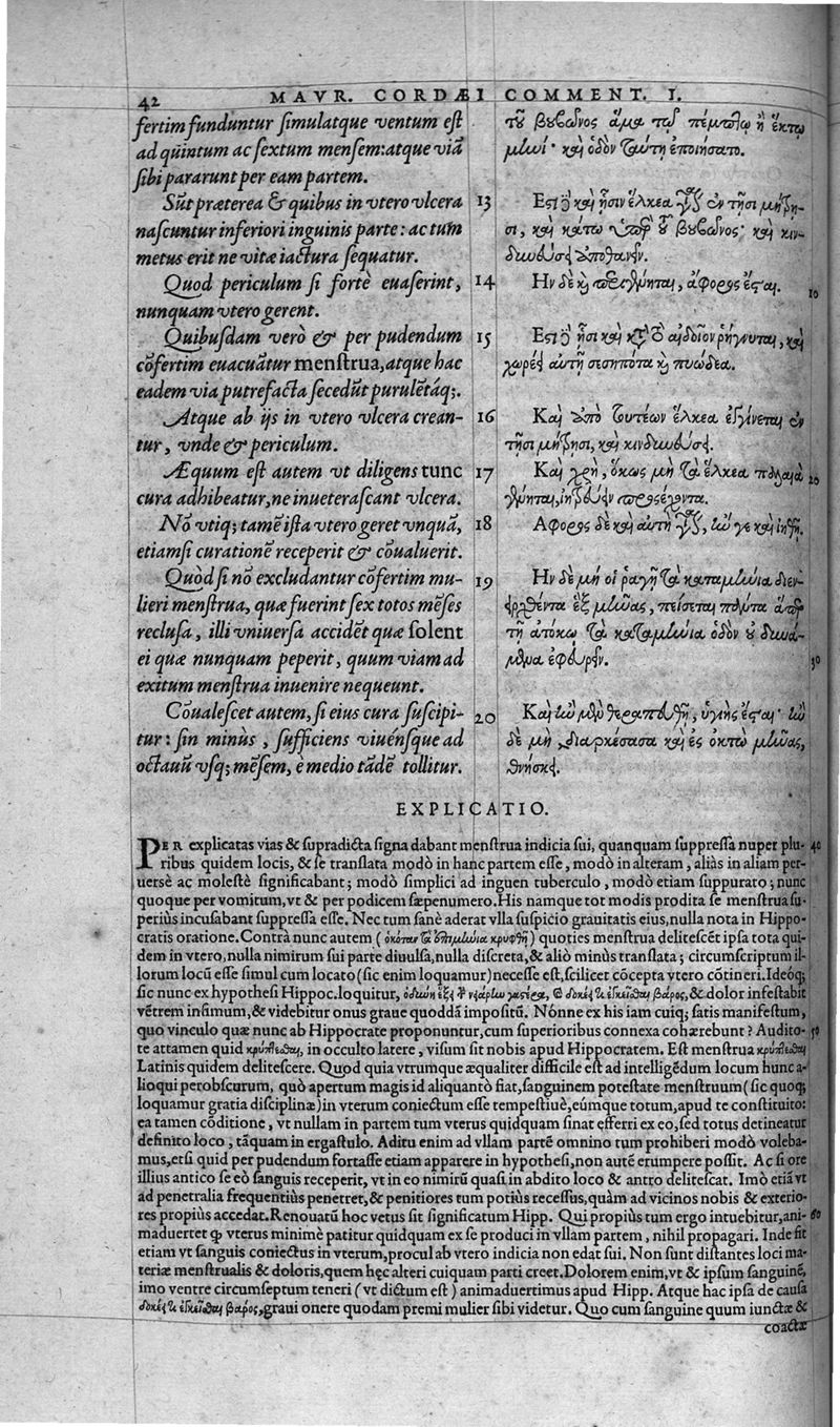 Hippocratis coi, medicorum principis Liber prior de morbis mulierum ... Mauricio Cordaeo Rhemo interprete & explicatore