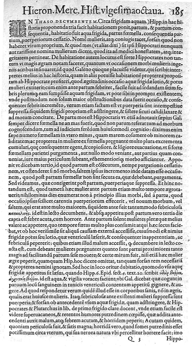Hieronymi Mercurialis,... Commentarii eruditissimi in Hippocratis,... Prognostica, Prorrhetica, de Victus ratione in morbis acutis et Epidemicas historias [cum versione eorum latina], quibus accessere tractatus luculentissimi de hominis generatione, vino et aqua balneisque pisanis, a Marco Cornacchino,... nunc primum in lucem editi...