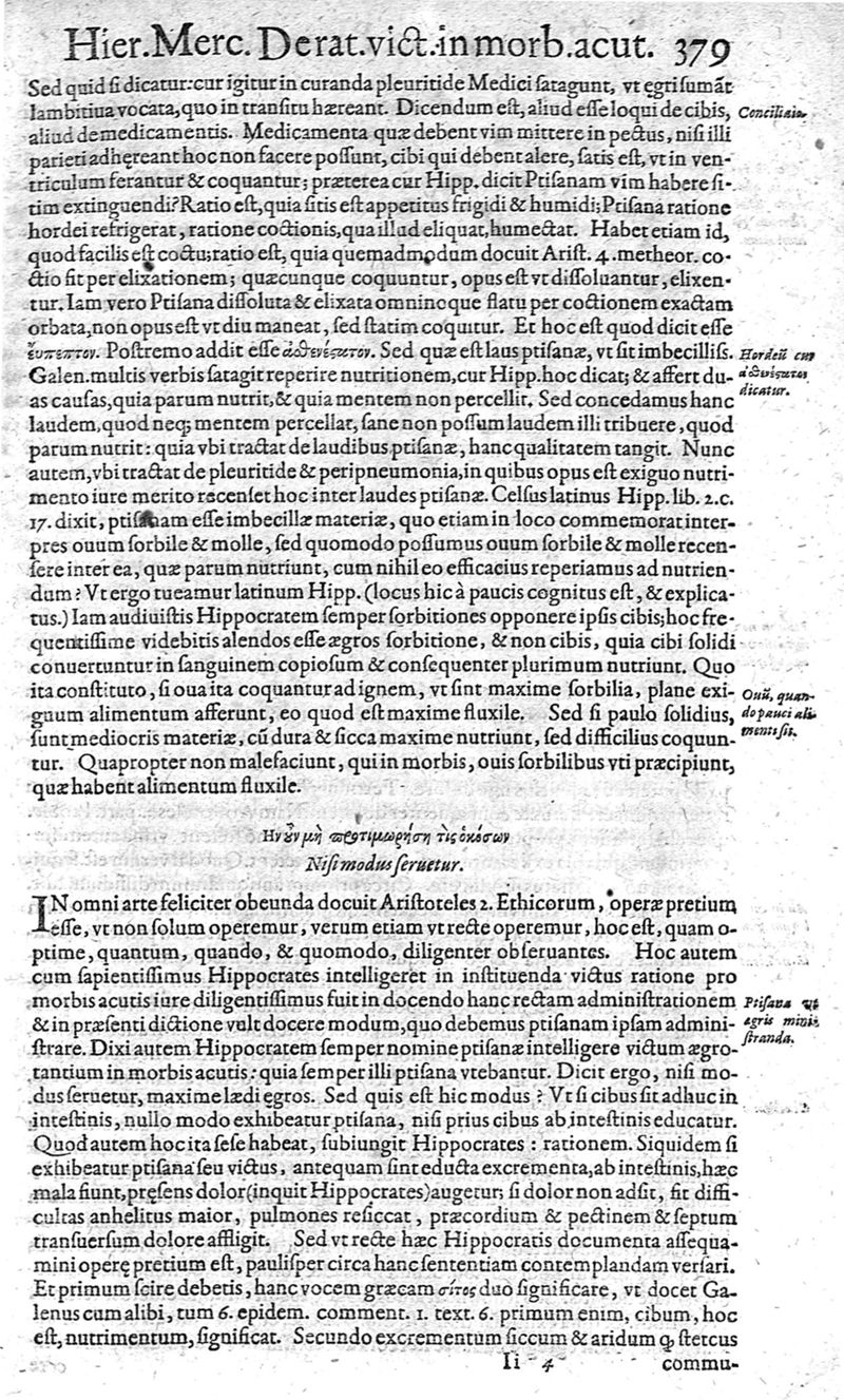 Hieronymi Mercurialis,... Commentarii eruditissimi in Hippocratis,... Prognostica, Prorrhetica, de Victus ratione in morbis acutis et Epidemicas historias [cum versione eorum latina], quibus accessere tractatus luculentissimi de hominis generatione, vino et aqua balneisque pisanis, a Marco Cornacchino,... nunc primum in lucem editi...