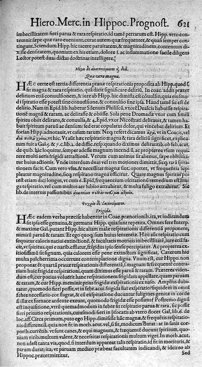 Hieronymi Mercurialis,... Commentarii eruditissimi in Hippocratis,... Prognostica, Prorrhetica, de Victus ratione in morbis acutis et Epidemicas historias [cum versione eorum latina], quibus accessere tractatus luculentissimi de hominis generatione, vino et aqua balneisque pisanis, a Marco Cornacchino,... nunc primum in lucem editi...