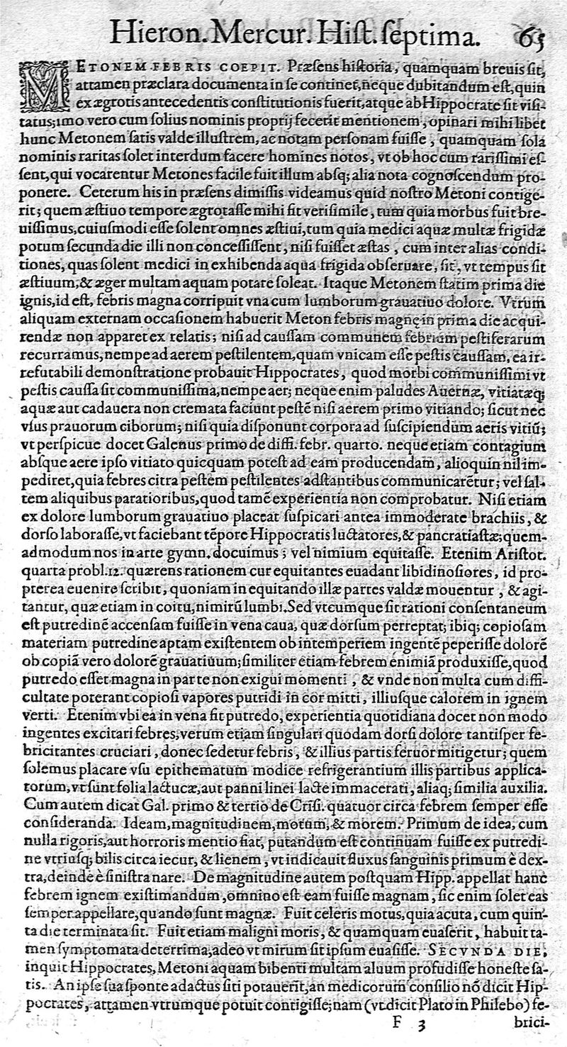 Hieronymi Mercurialis,... Commentarii eruditissimi in Hippocratis,... Prognostica, Prorrhetica, de Victus ratione in morbis acutis et Epidemicas historias [cum versione eorum latina], quibus accessere tractatus luculentissimi de hominis generatione, vino et aqua balneisque pisanis, a Marco Cornacchino,... nunc primum in lucem editi...