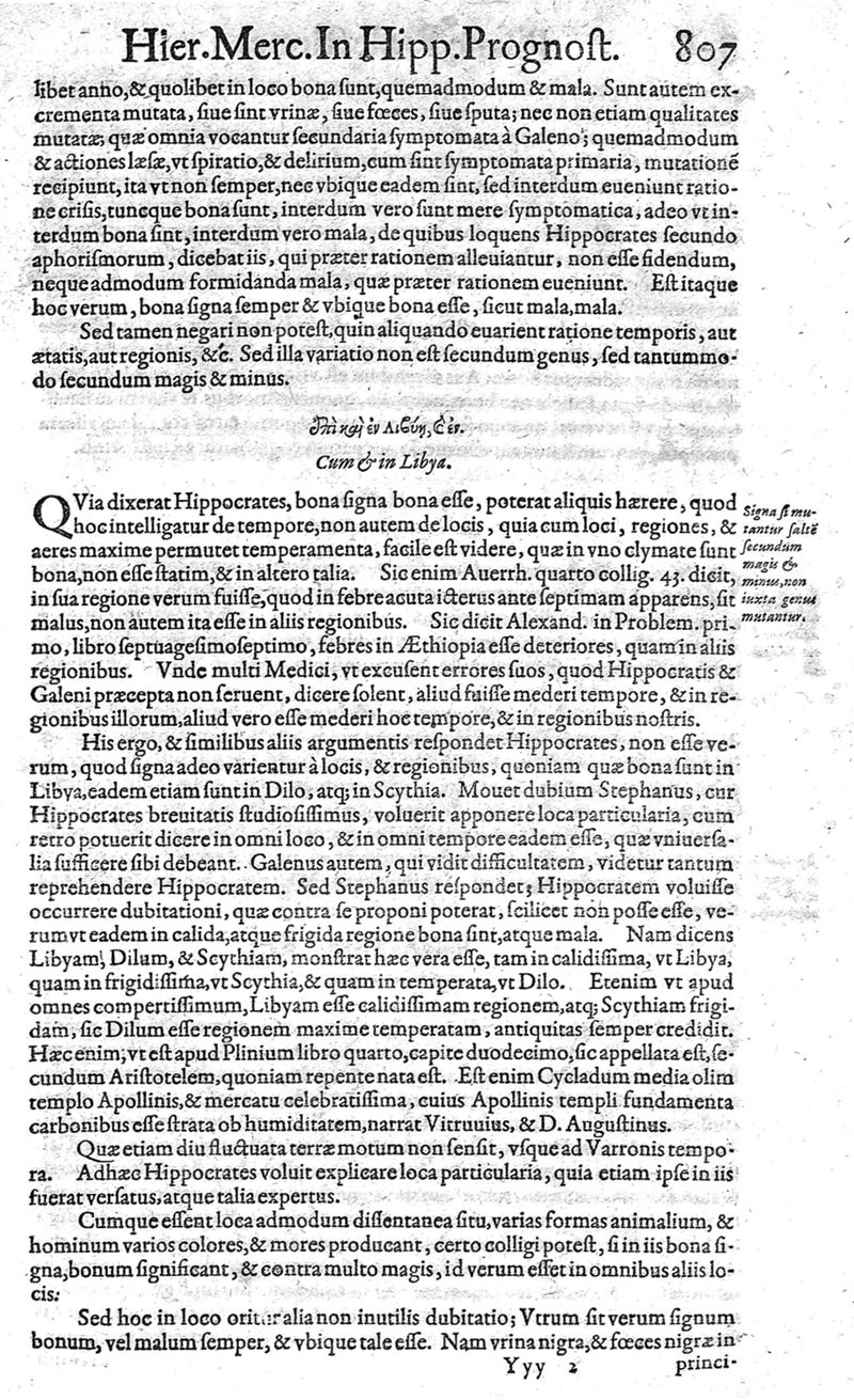 Hieronymi Mercurialis,... Commentarii eruditissimi in Hippocratis,... Prognostica, Prorrhetica, de Victus ratione in morbis acutis et Epidemicas historias [cum versione eorum latina], quibus accessere tractatus luculentissimi de hominis generatione, vino et aqua balneisque pisanis, a Marco Cornacchino,... nunc primum in lucem editi...