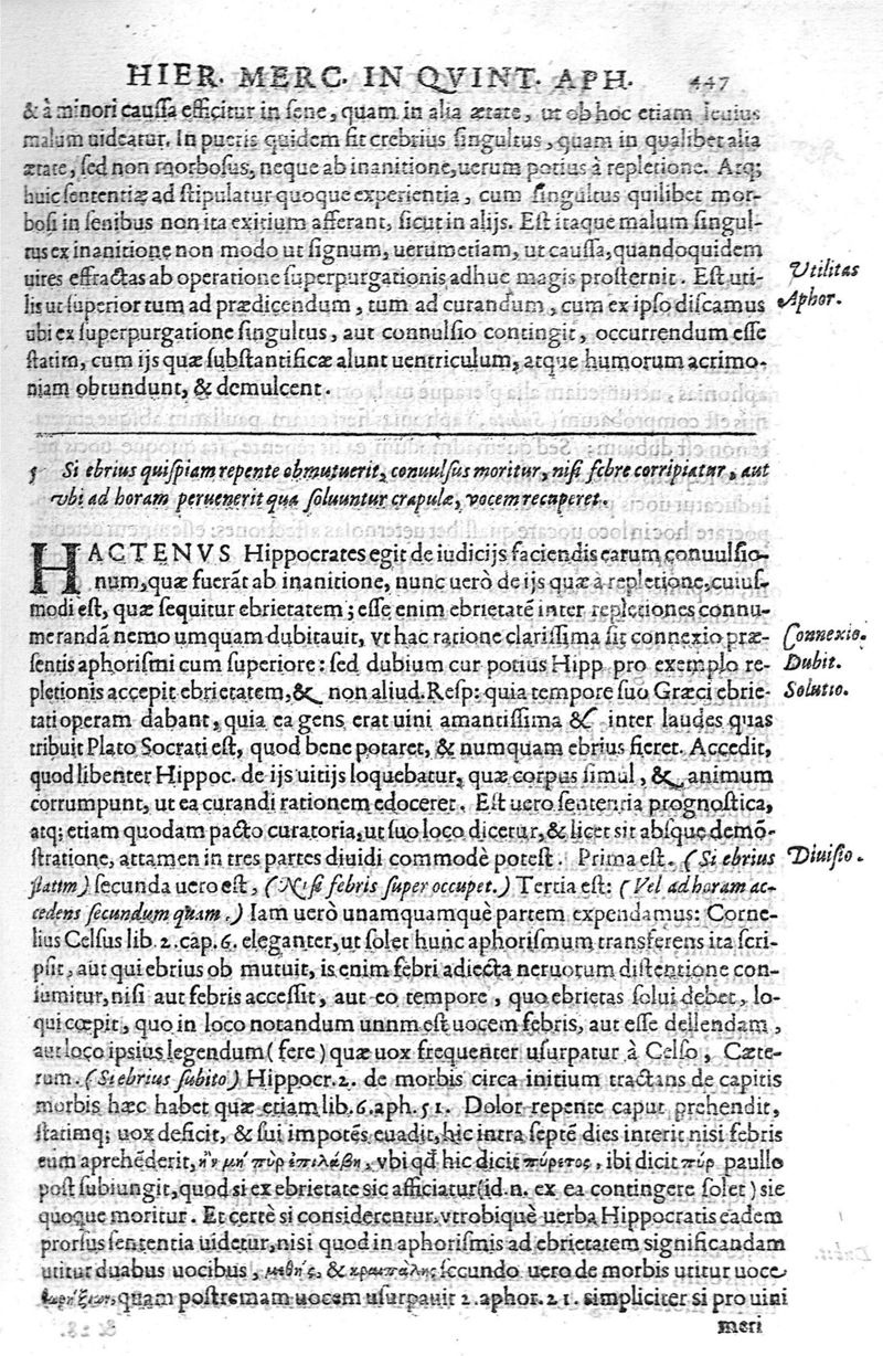 Hieronymi Mercurialis,... In omnes Hippocratis Aphorismorum libros praelectiones patavinae... in quibus innumeri pene ipsius Hippocr. obscuriores loci, ac sententiae elucidantur, problemataq permulta obstrusiora facili methodo enodantur : opvs varia doctrina refertum, philosophis, medicis, ac studiosis omnibus vsui, ac iucundum futurum ...