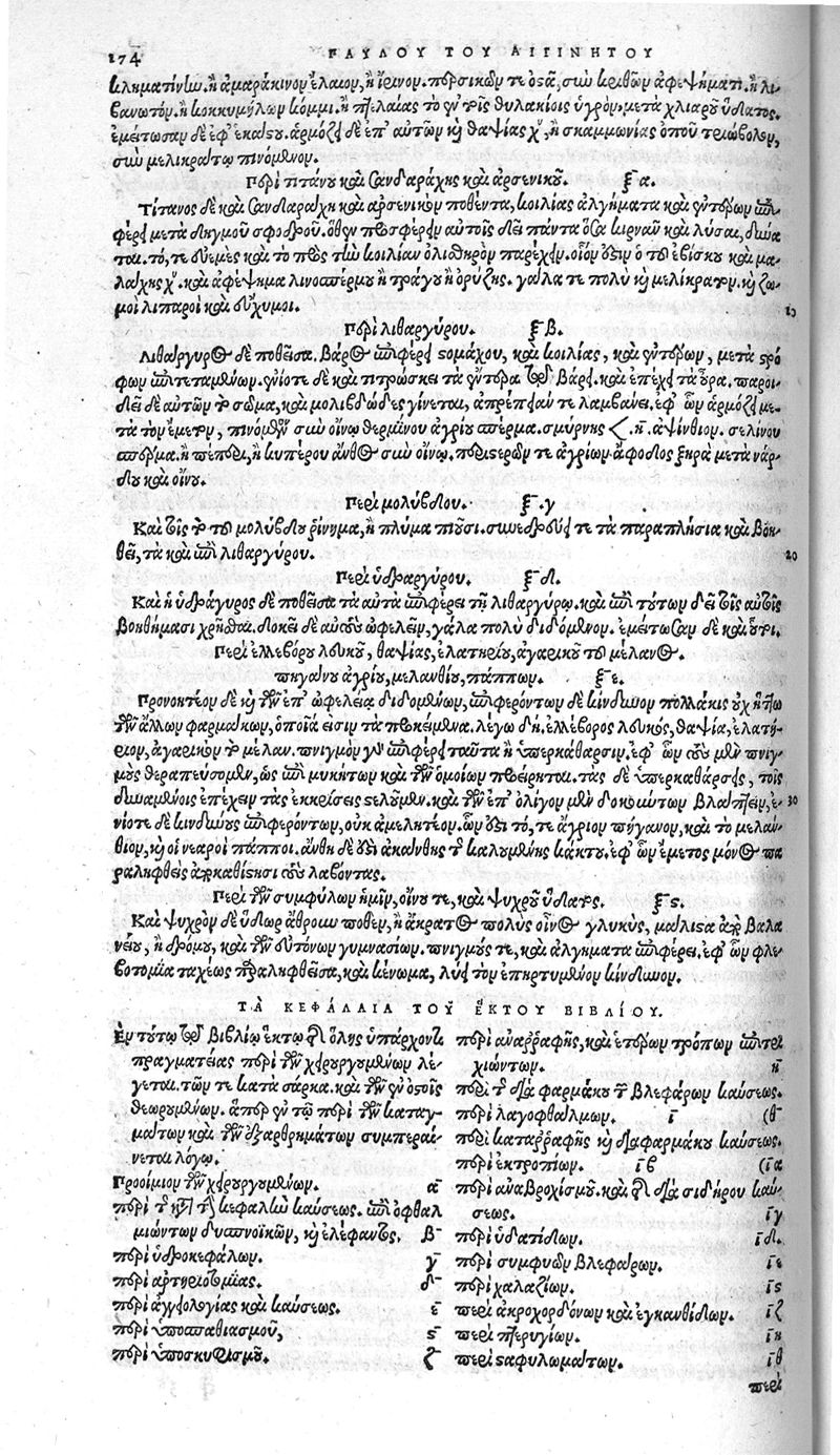 Paulou aiginêtou iatrou aristou, biblia hepta. en archê ekastou tôn bibliôn deiknutai ta en ekeinô periechomena / pauli aeginetae medici optimi, libri septem...