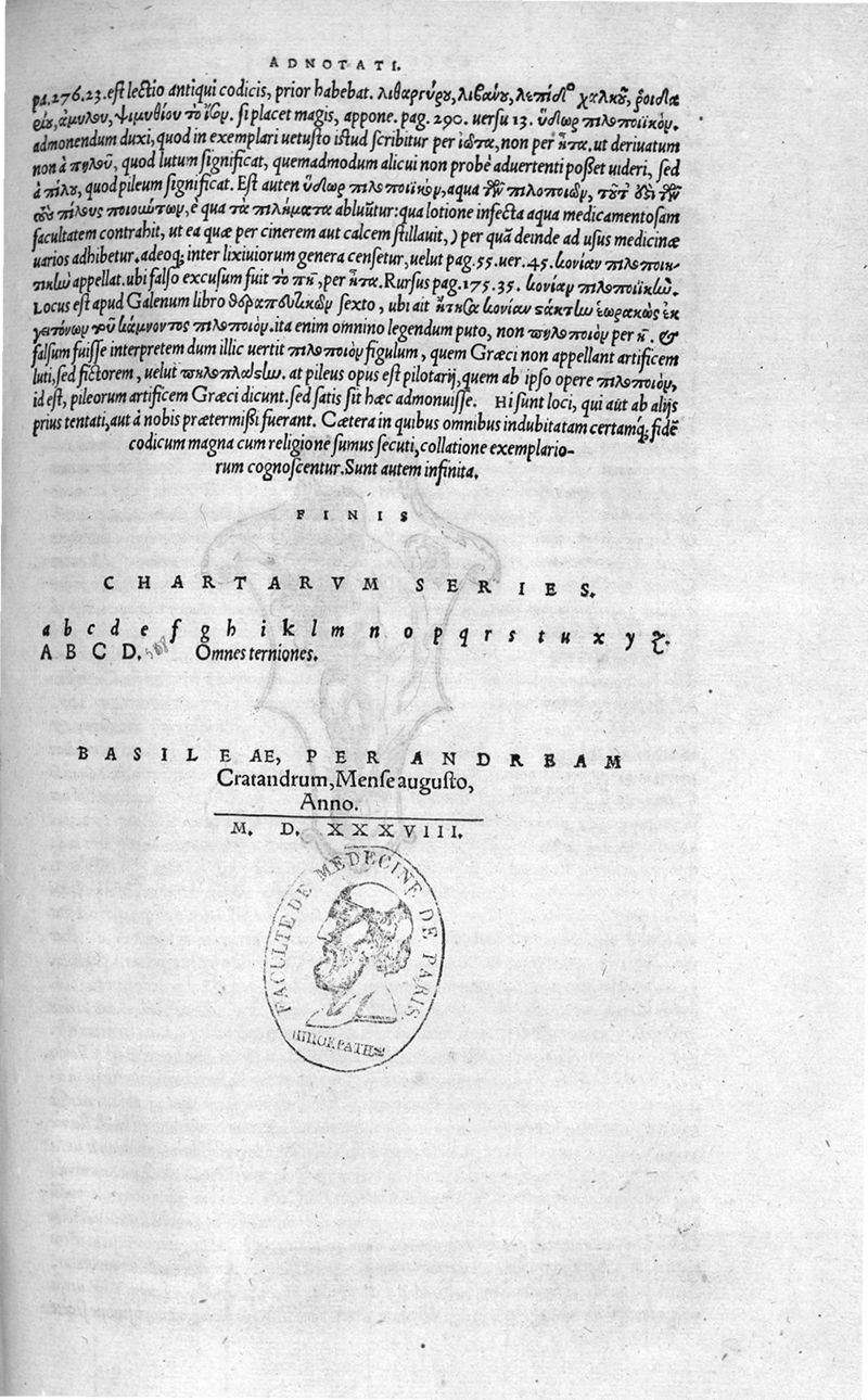 Basel, chez Andreas Cratander, 1538.
