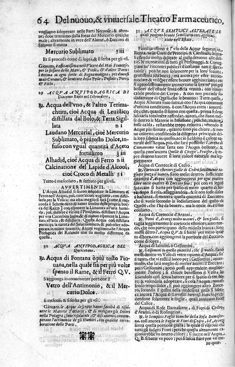 Nuovo, et universale theatro farmaceutico. Fondato sopra le preparationi farmaceutiche scritte da'medici antichi, greci, e arabi; principalmente da Galeno, e Mesue / ... ampliato oltre le fabriche ... contenute ne gli antidotarii Veneti di Giorgio Melichio, aumentato da Alberto Stecchini ... con quelle ... compositioni ancora ... da gli più lodati scrittori ...