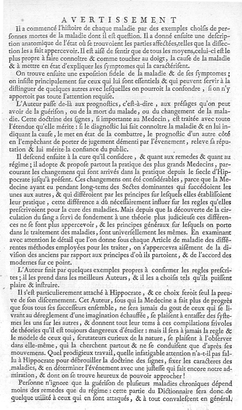 Dictionnaire universel de medecine, de chirurgie, de chymie, de botanique, d'anatomie, de pharmacie, d'histoire naturelle, &c. Précédé d'un Discours historique sur l'origine & les progres de la medecine. Traduit de l'anglois de M. James, par Mrs. Diderot, Eidous & Toussaint. T. I