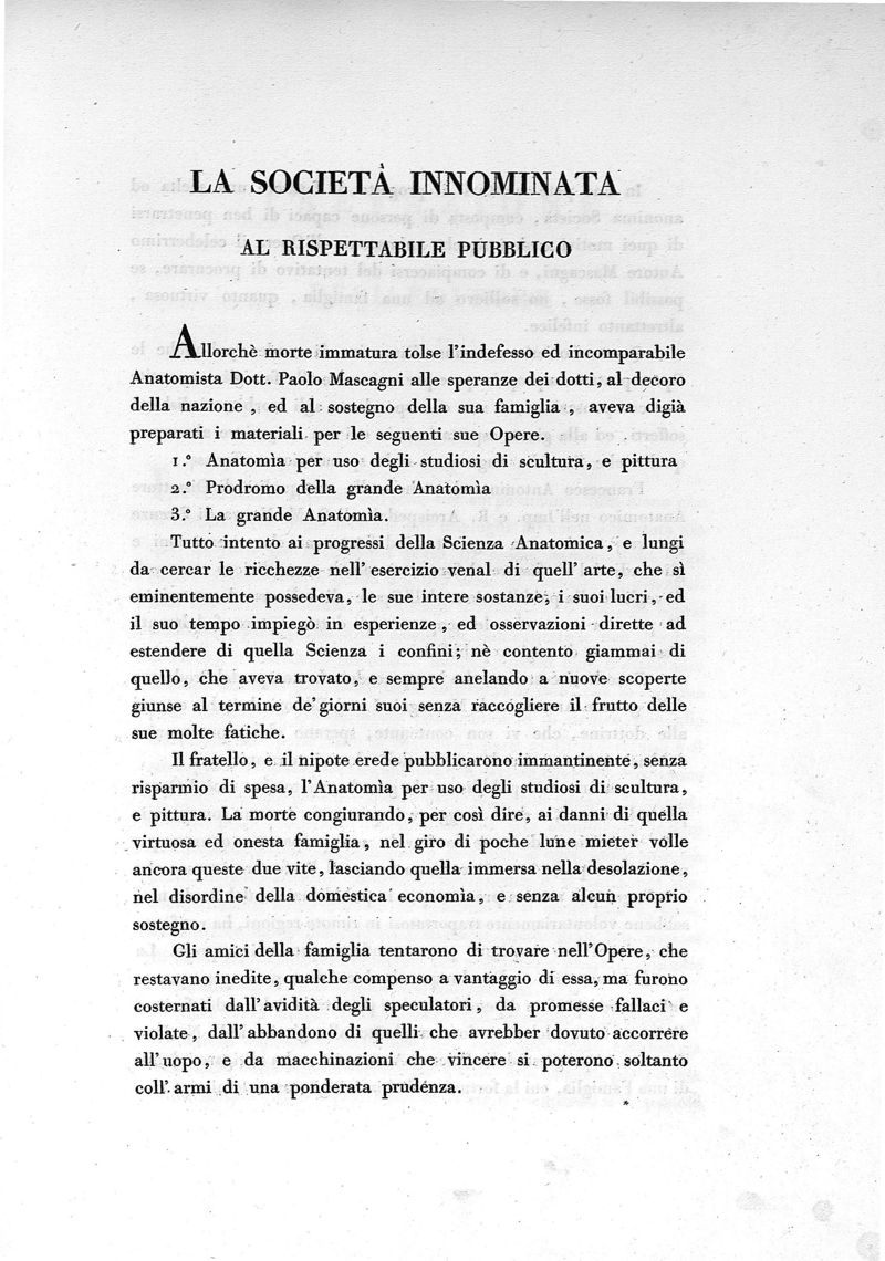Prodromo della Grande anatomia, seconda opera postuma di Paolo Mascagni, posta in ordine e pubblicata a spese di una società innominata da Francesco Antommarchi...