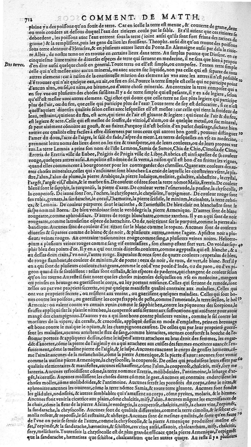 Commentaires de M. Pierre André Matthiole medecin senois, sur les six livres de Ped. Dioscor. Anazarbeen de la matiere Medecinale, …