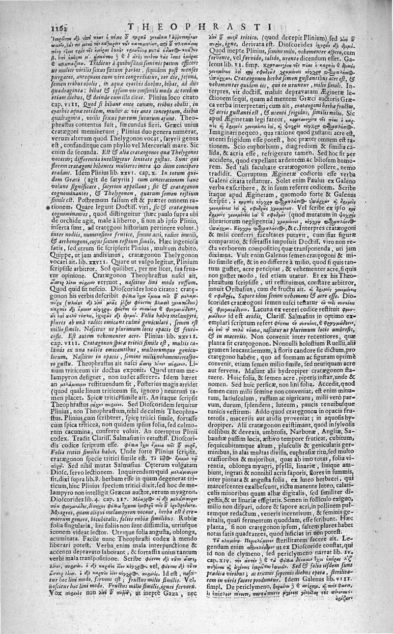 Theophrasti Eresii de Historia plantarum libri decem graece et latine. In quibus textum graecum..., latinam Gazae versionem... rariorum plantarum iconibus illustravit Joannes Bodaeus a Stapel,... Accesserunt Julii Caesaris Scaligeri in eosdem libros animadversiones, et Roberti Constantini annotationes...