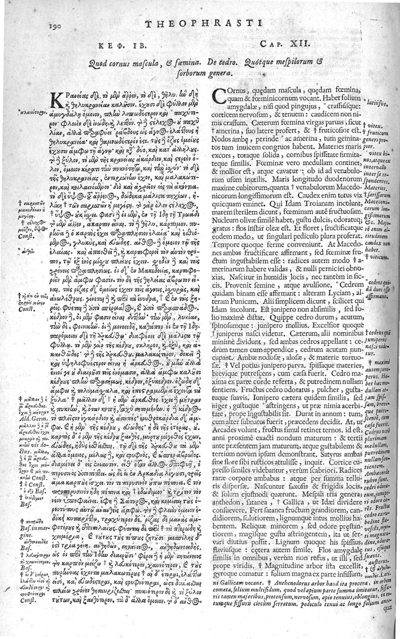 Theophrasti Eresii de Historia plantarum libri decem graece et latine. In quibus textum graecum..., latinam Gazae versionem... rariorum plantarum iconibus illustravit Joannes Bodaeus a Stapel,... Accesserunt Julii Caesaris Scaligeri in eosdem libros animadversiones, et Roberti Constantini annotationes...