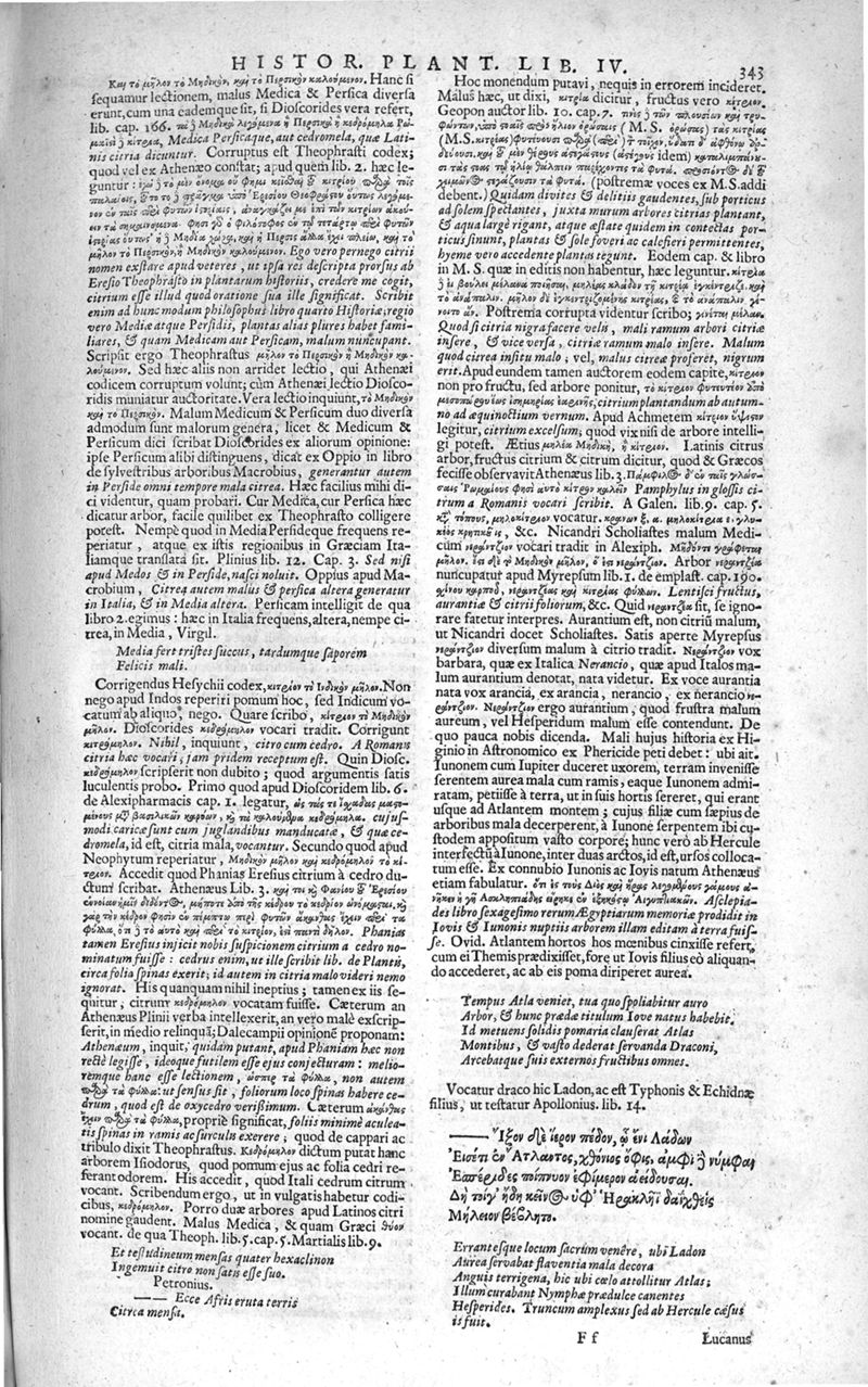 Theophrasti Eresii de Historia plantarum libri decem graece et latine. In quibus textum graecum..., latinam Gazae versionem... rariorum plantarum iconibus illustravit Joannes Bodaeus a Stapel,... Accesserunt Julii Caesaris Scaligeri in eosdem libros animadversiones, et Roberti Constantini annotationes...