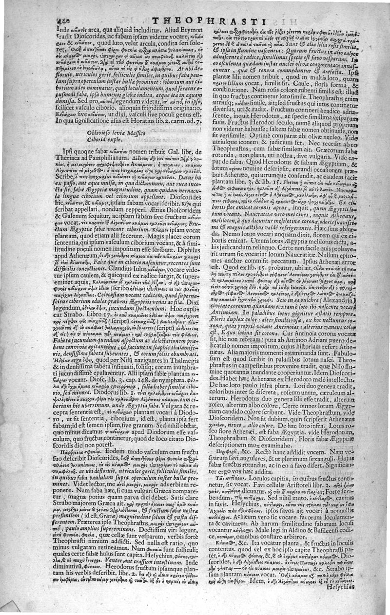 Theophrasti Eresii de Historia plantarum libri decem graece et latine. In quibus textum graecum..., latinam Gazae versionem... rariorum plantarum iconibus illustravit Joannes Bodaeus a Stapel,... Accesserunt Julii Caesaris Scaligeri in eosdem libros animadversiones, et Roberti Constantini annotationes...