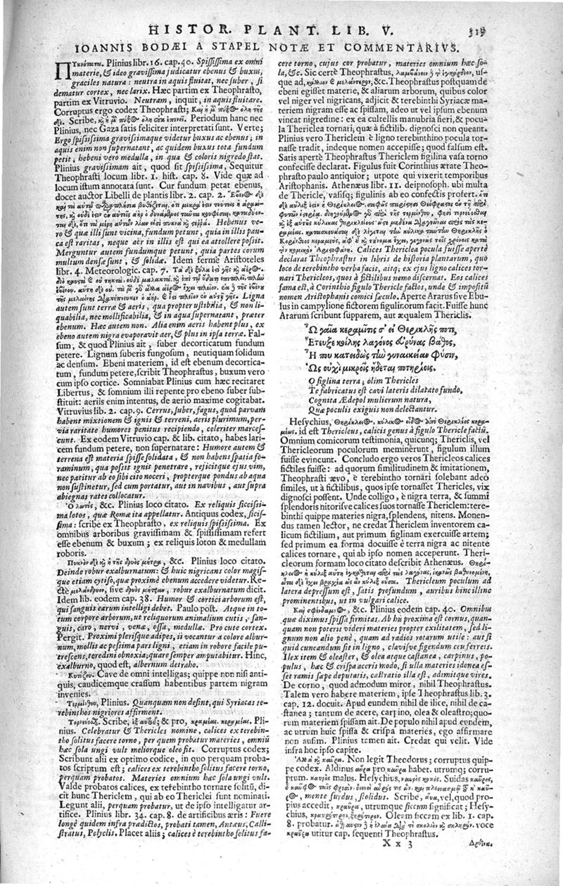 Theophrasti Eresii de Historia plantarum libri decem graece et latine. In quibus textum graecum..., latinam Gazae versionem... rariorum plantarum iconibus illustravit Joannes Bodaeus a Stapel,... Accesserunt Julii Caesaris Scaligeri in eosdem libros animadversiones, et Roberti Constantini annotationes...