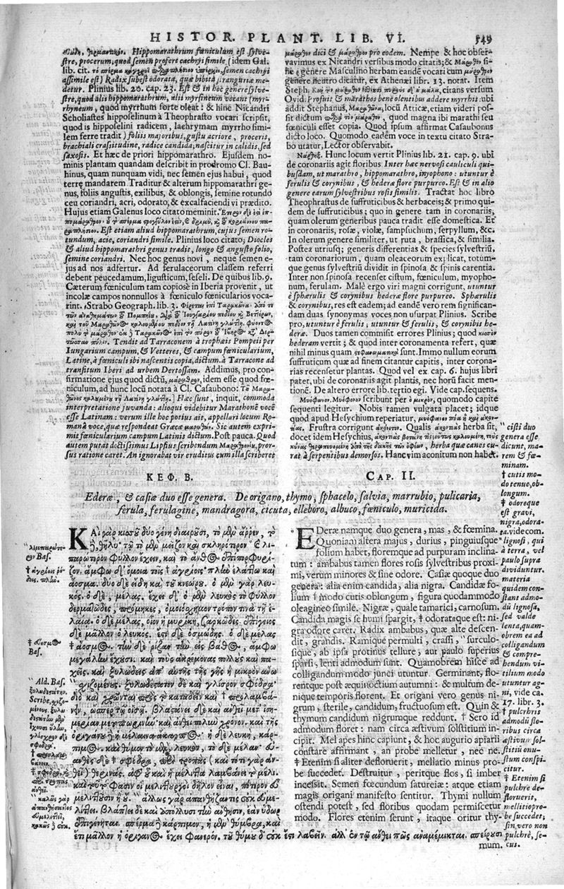 Theophrasti Eresii de Historia plantarum libri decem graece et latine. In quibus textum graecum..., latinam Gazae versionem... rariorum plantarum iconibus illustravit Joannes Bodaeus a Stapel,... Accesserunt Julii Caesaris Scaligeri in eosdem libros animadversiones, et Roberti Constantini annotationes...