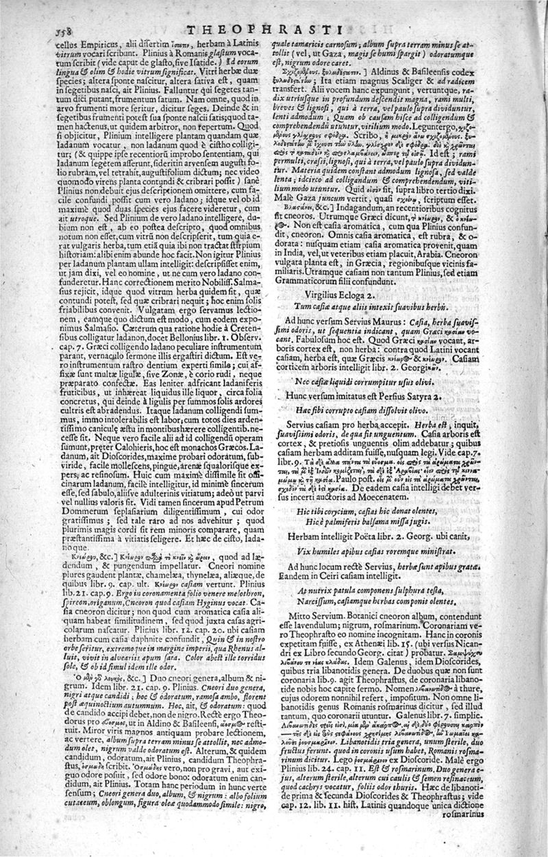 Theophrasti Eresii de Historia plantarum libri decem graece et latine. In quibus textum graecum..., latinam Gazae versionem... rariorum plantarum iconibus illustravit Joannes Bodaeus a Stapel,... Accesserunt Julii Caesaris Scaligeri in eosdem libros animadversiones, et Roberti Constantini annotationes...