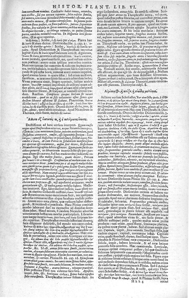 Theophrasti Eresii de Historia plantarum libri decem graece et latine. In quibus textum graecum..., latinam Gazae versionem... rariorum plantarum iconibus illustravit Joannes Bodaeus a Stapel,... Accesserunt Julii Caesaris Scaligeri in eosdem libros animadversiones, et Roberti Constantini annotationes...
