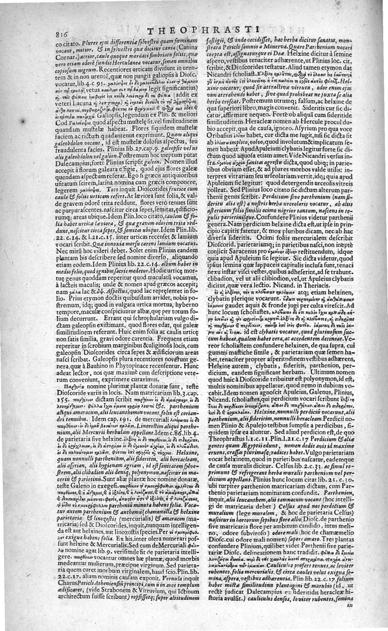 Theophrasti Eresii de Historia plantarum libri decem graece et latine. In quibus textum graecum..., latinam Gazae versionem... rariorum plantarum iconibus illustravit Joannes Bodaeus a Stapel,... Accesserunt Julii Caesaris Scaligeri in eosdem libros animadversiones, et Roberti Constantini annotationes...