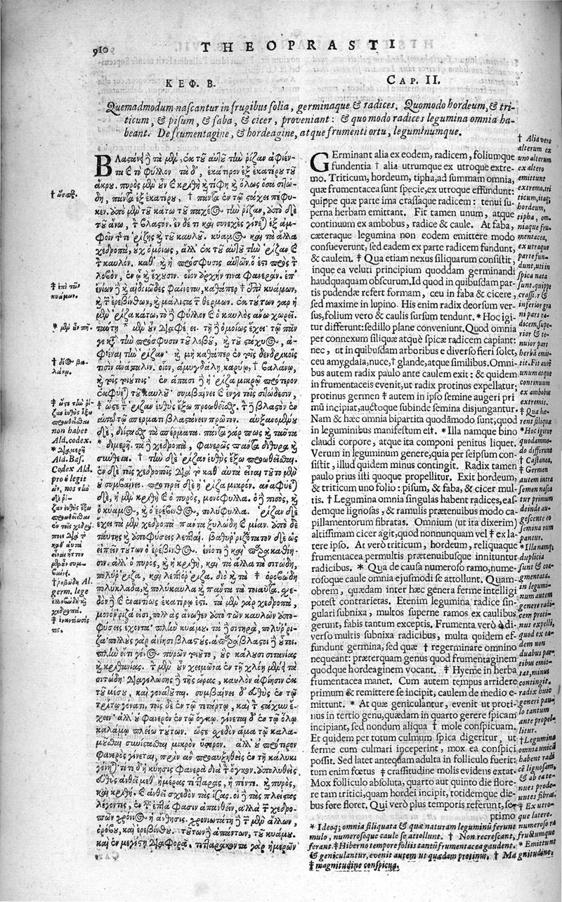 Theophrasti Eresii de Historia plantarum libri decem graece et latine. In quibus textum graecum..., latinam Gazae versionem... rariorum plantarum iconibus illustravit Joannes Bodaeus a Stapel,... Accesserunt Julii Caesaris Scaligeri in eosdem libros animadversiones, et Roberti Constantini annotationes...