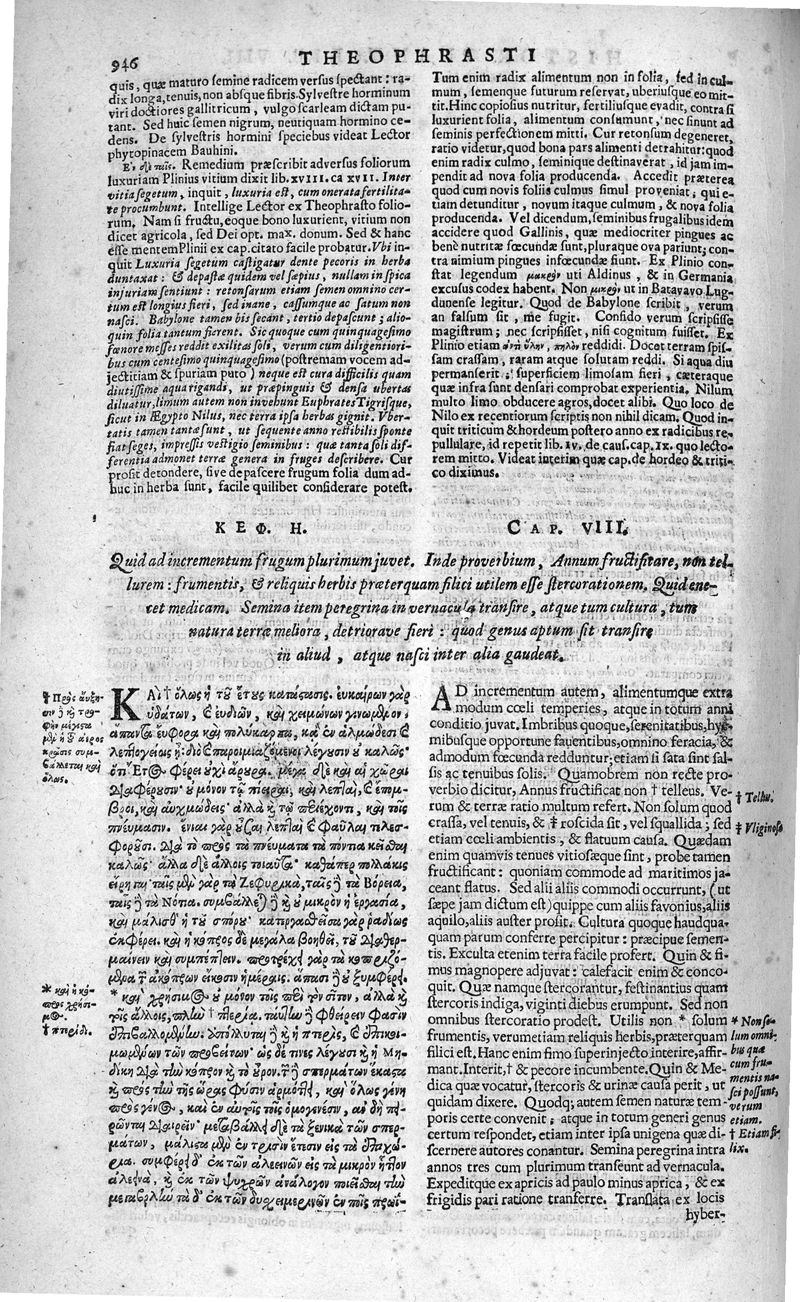 Theophrasti Eresii de Historia plantarum libri decem graece et latine. In quibus textum graecum..., latinam Gazae versionem... rariorum plantarum iconibus illustravit Joannes Bodaeus a Stapel,... Accesserunt Julii Caesaris Scaligeri in eosdem libros animadversiones, et Roberti Constantini annotationes...