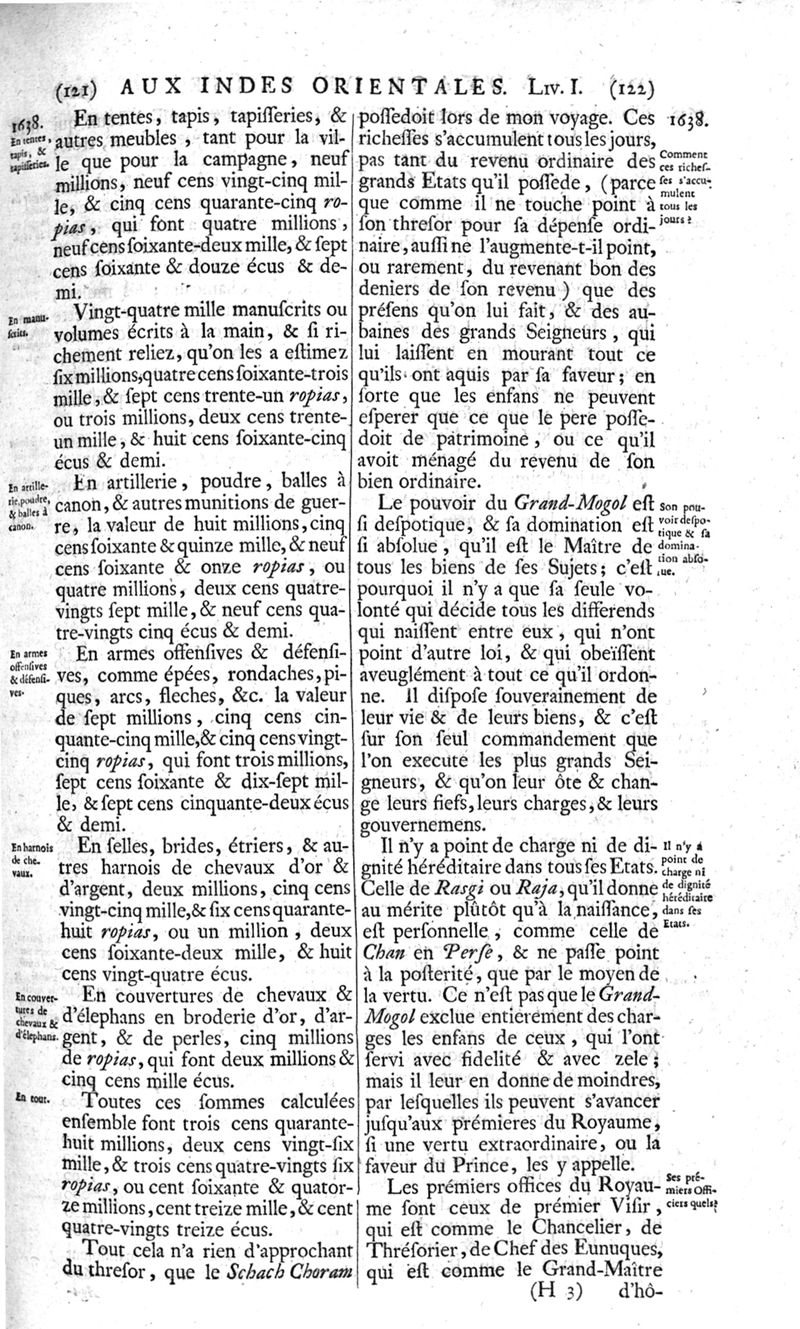 Voyages celebres & remarquables, faits de Perse aux Indes Orientales, par le sr. Jean-Albert de Mandelslo, gentilhomme des ambassadeurs du duc de Holstein en Moscovie & Perse. Contenant une description nouvelle & très-curieuse de l'Indostan, de l'empire du Grand-Mogol, des îles & presqu'îles de l'Orient, des royaumes de Siam, du Japon, de la Chine, du Congo, &c. Où l'on trouve la situation exacte de tous ces pays & etats ; & où l'on rapporte assez au long le naturel, les moeurs, & les coutumes de leurs habitans; leur gouvernement politique & ecclesiastique; les raretez qui se rencontrent dans ces pays; & les ceremonies qu'on y observe. Mis en ordre & publiez, après la mort de l'illustre voyageur, par le sr. Adam Olearius... Traduits de l'original par le sr. A. De Wicquefort ... Divisez en deux parties. Nouvelle edition revûe & corrigée exactement, augmentée considerablement, tant dans le corps de l'ouvrage qu'aux marginales, & surpassant en bonté & en beauté les précedentes editions. On y a encore ajouté des cartes géographiques, des représentations des villes, & autres taille-douces très-belles & très-exactes. On y trouve à la fin une Table fort ample & fort exacte. Tome premier [-second].