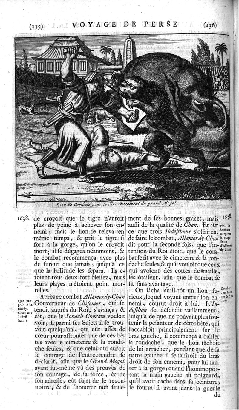 Voyages celebres & remarquables, faits de Perse aux Indes Orientales, par le sr. Jean-Albert de Mandelslo, gentilhomme des ambassadeurs du duc de Holstein en Moscovie & Perse. Contenant une description nouvelle & très-curieuse de l'Indostan, de l'empire du Grand-Mogol, des îles & presqu'îles de l'Orient, des royaumes de Siam, du Japon, de la Chine, du Congo, &c. Où l'on trouve la situation exacte de tous ces pays & etats ; & où l'on rapporte assez au long le naturel, les moeurs, & les coutumes de leurs habitans; leur gouvernement politique & ecclesiastique; les raretez qui se rencontrent dans ces pays; & les ceremonies qu'on y observe. Mis en ordre & publiez, après la mort de l'illustre voyageur, par le sr. Adam Olearius... Traduits de l'original par le sr. A. De Wicquefort ... Divisez en deux parties. Nouvelle edition revûe & corrigée exactement, augmentée considerablement, tant dans le corps de l'ouvrage qu'aux marginales, & surpassant en bonté & en beauté les précedentes editions. On y a encore ajouté des cartes géographiques, des représentations des villes, & autres taille-douces très-belles & très-exactes. On y trouve à la fin une Table fort ample & fort exacte. Tome premier [-second].